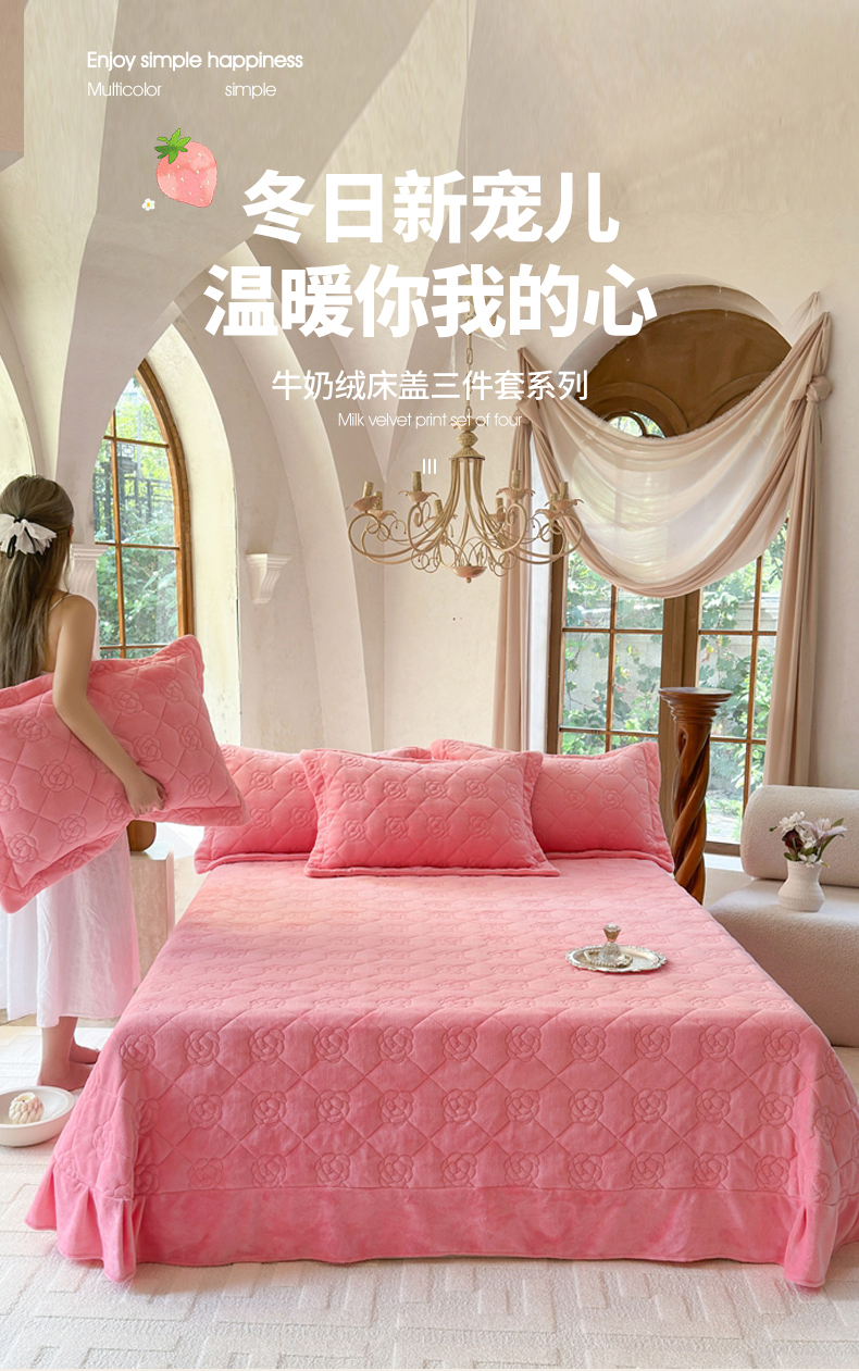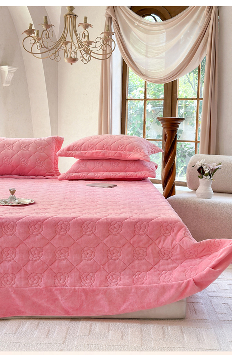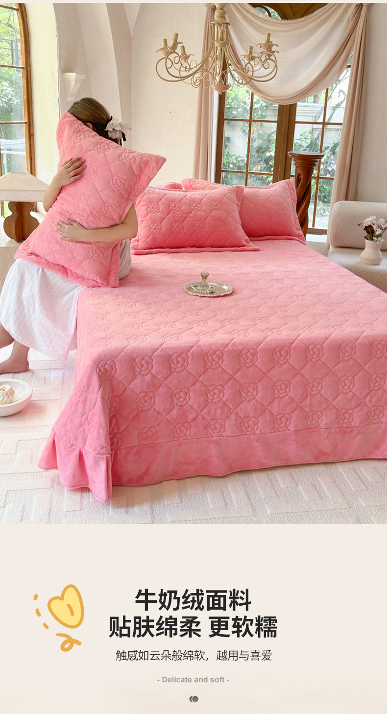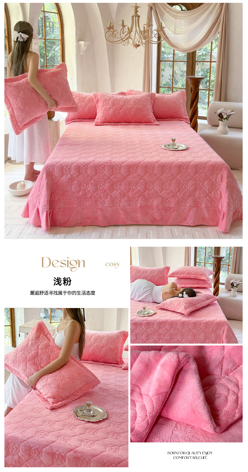 商品名称:7V 2025新款牛奶绒床盖 浅粉