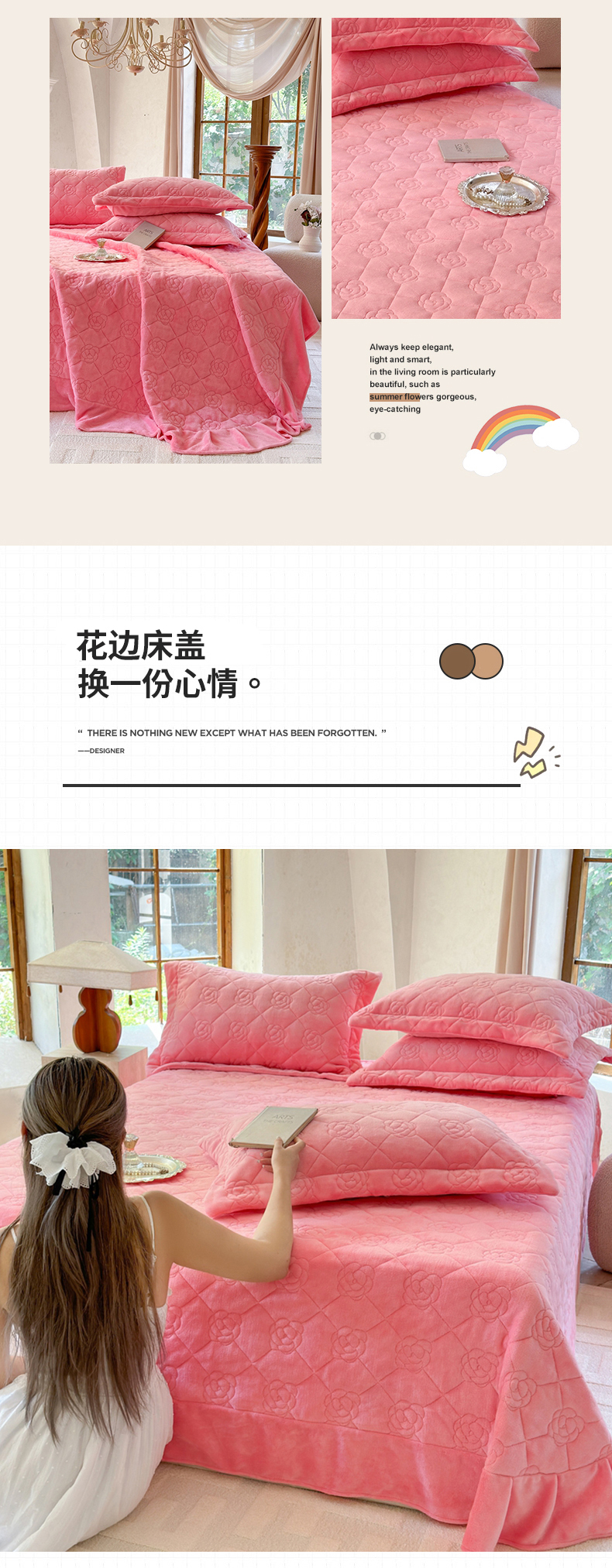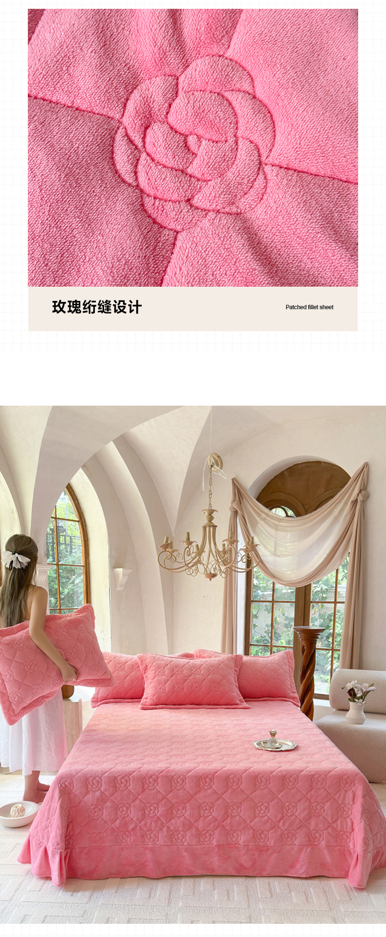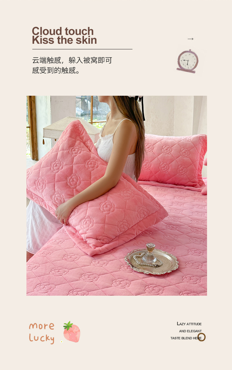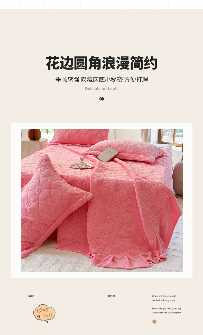 商品名称:7V 2025新款牛奶绒床盖 浅粉