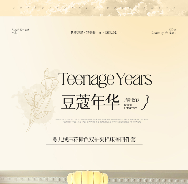 (总)宜凡家纺 2025新款全棉数码印花床裙四件套系列二,繁花似锦,春景熙熙,花间密语,花间柔光,满芯花溪,迷离夜色,婉如初见,雪域森林