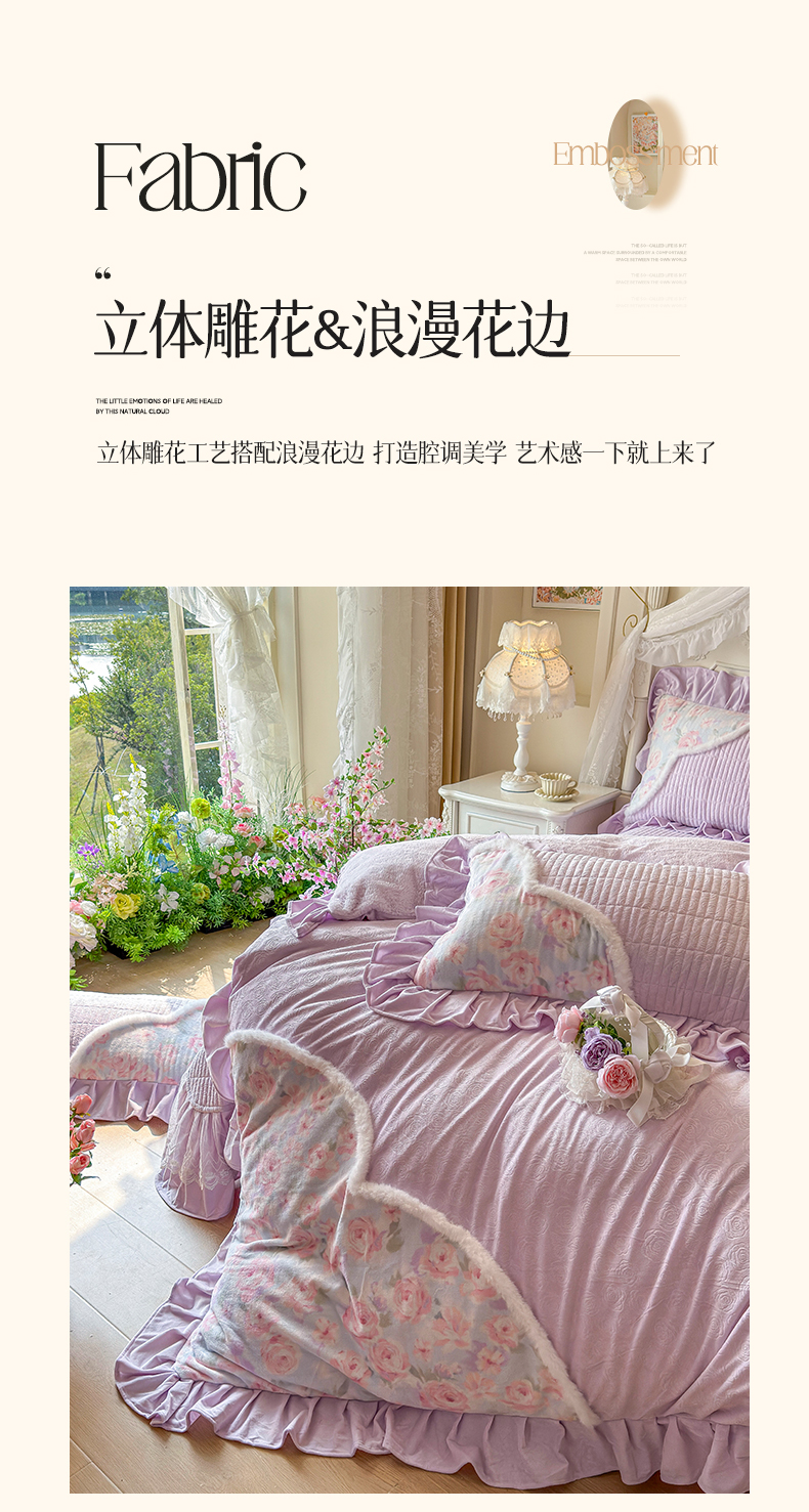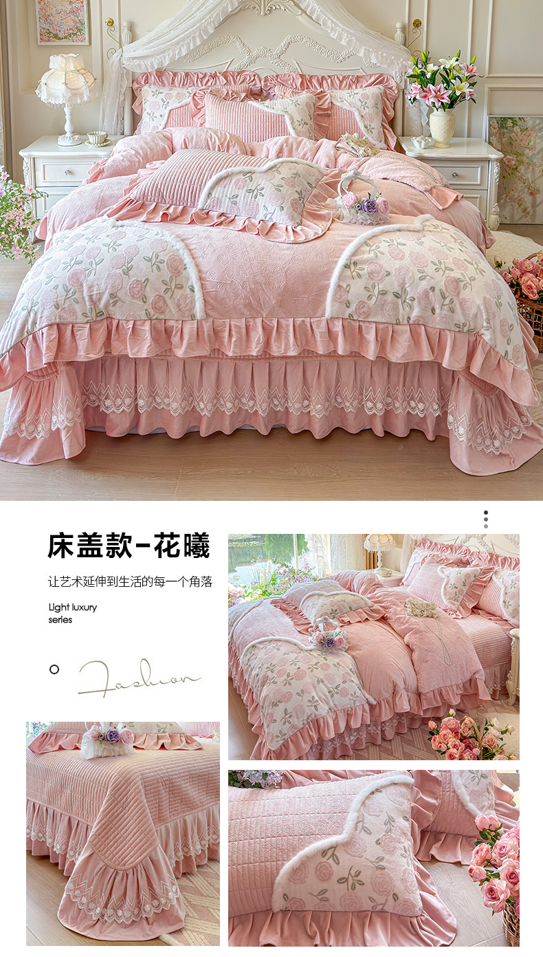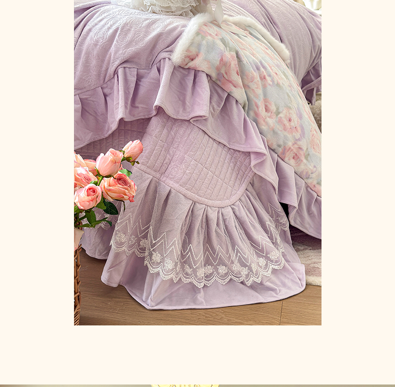 (总)宜凡家纺 2025新款兔绒提花牛奶绒夹棉床裙四件套,爱心 少女粉,爱心 粉紫,爱心 驼色,蝶舞 大红,蝶舞 米色,蝶舞 浅紫,蝶舞 玉色,简爱 苍青,简爱 豆沙紫,简爱 玉色,樱桃 苍青,樱桃 豆沙紫,樱桃 奶油白