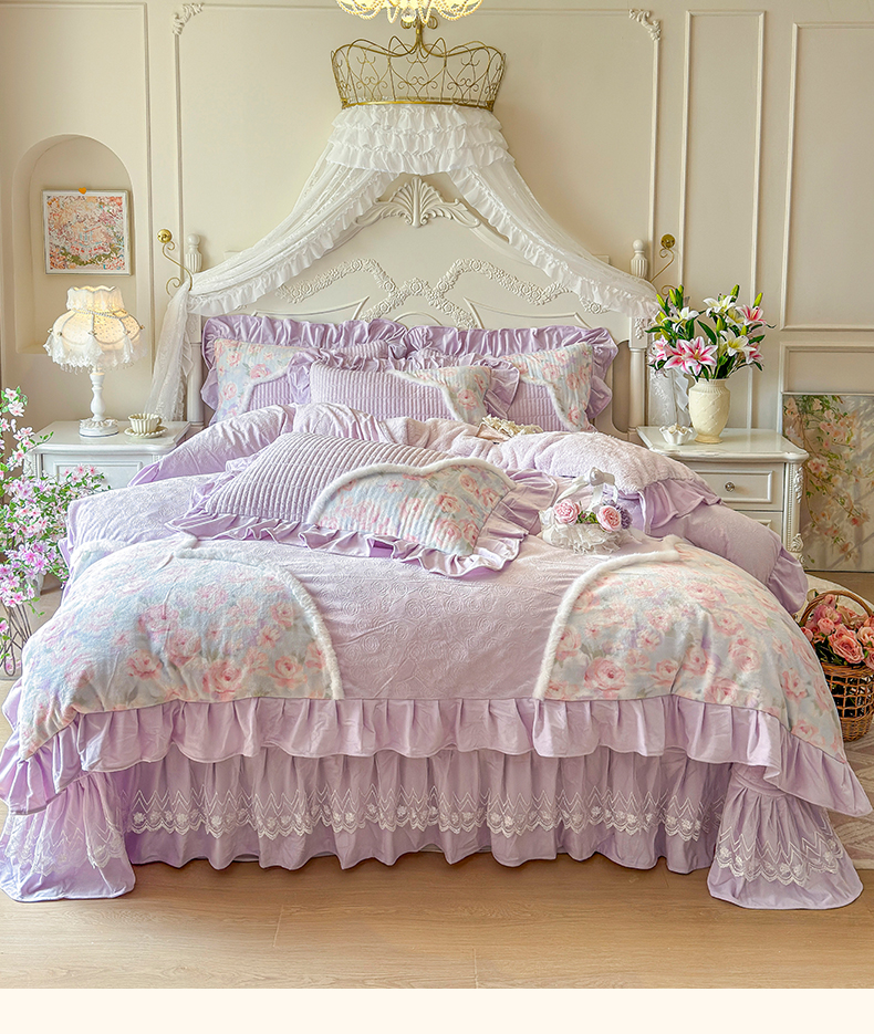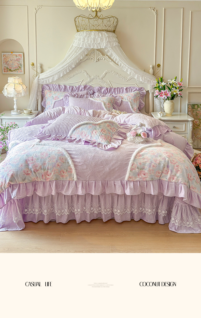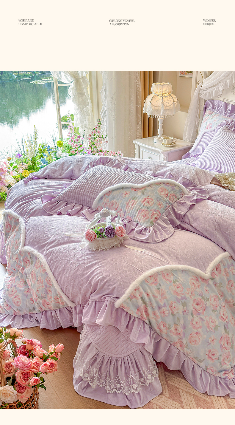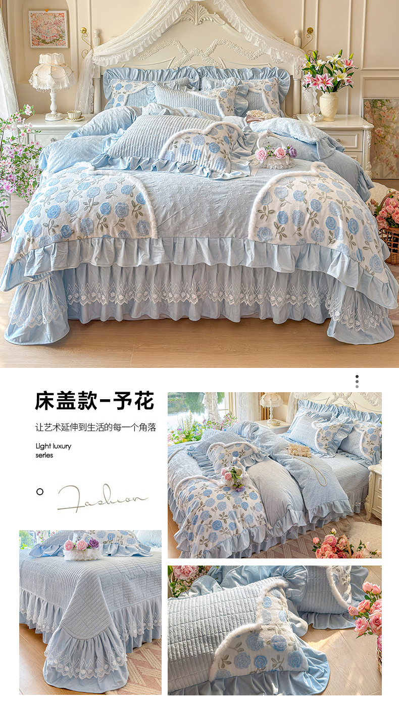 (总)宜凡家纺 2025新款兔绒提花牛奶绒夹棉床裙四件套,爱心 少女粉,爱心 粉紫,爱心 驼色,蝶舞 大红,蝶舞 米色,蝶舞 浅紫,蝶舞 玉色,简爱 苍青,简爱 豆沙紫,简爱 玉色,樱桃 苍青,樱桃 豆沙紫,樱桃 奶油白