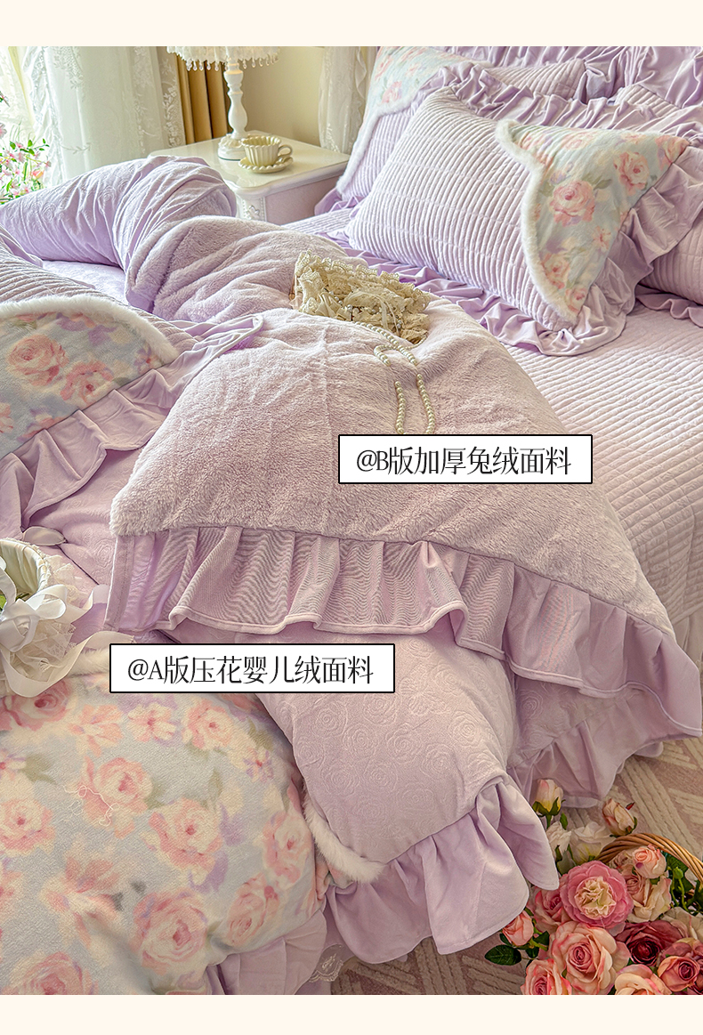 商品名称:宜凡家纺 2025新款婴儿绒压花撞色双拼夹棉床盖四件套 床盖款-紫幸