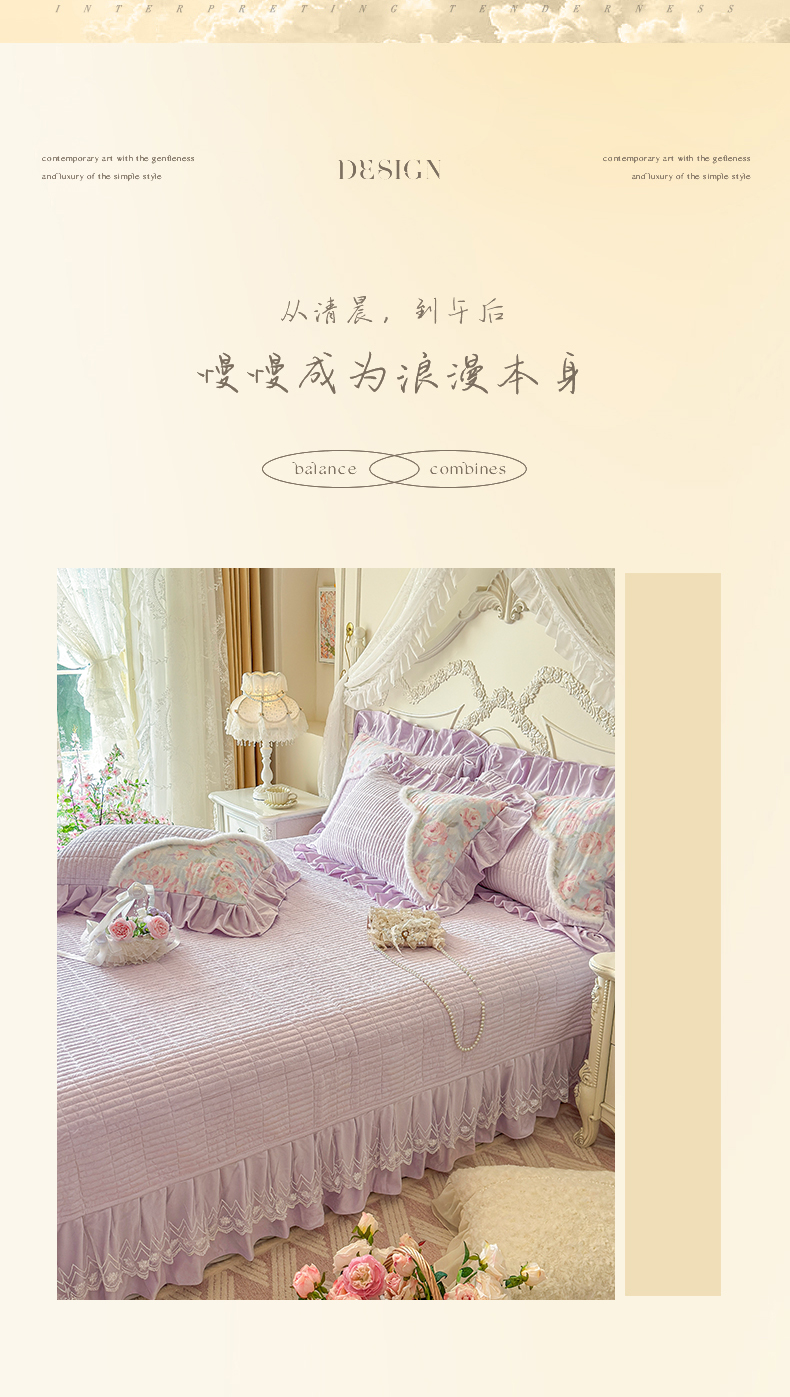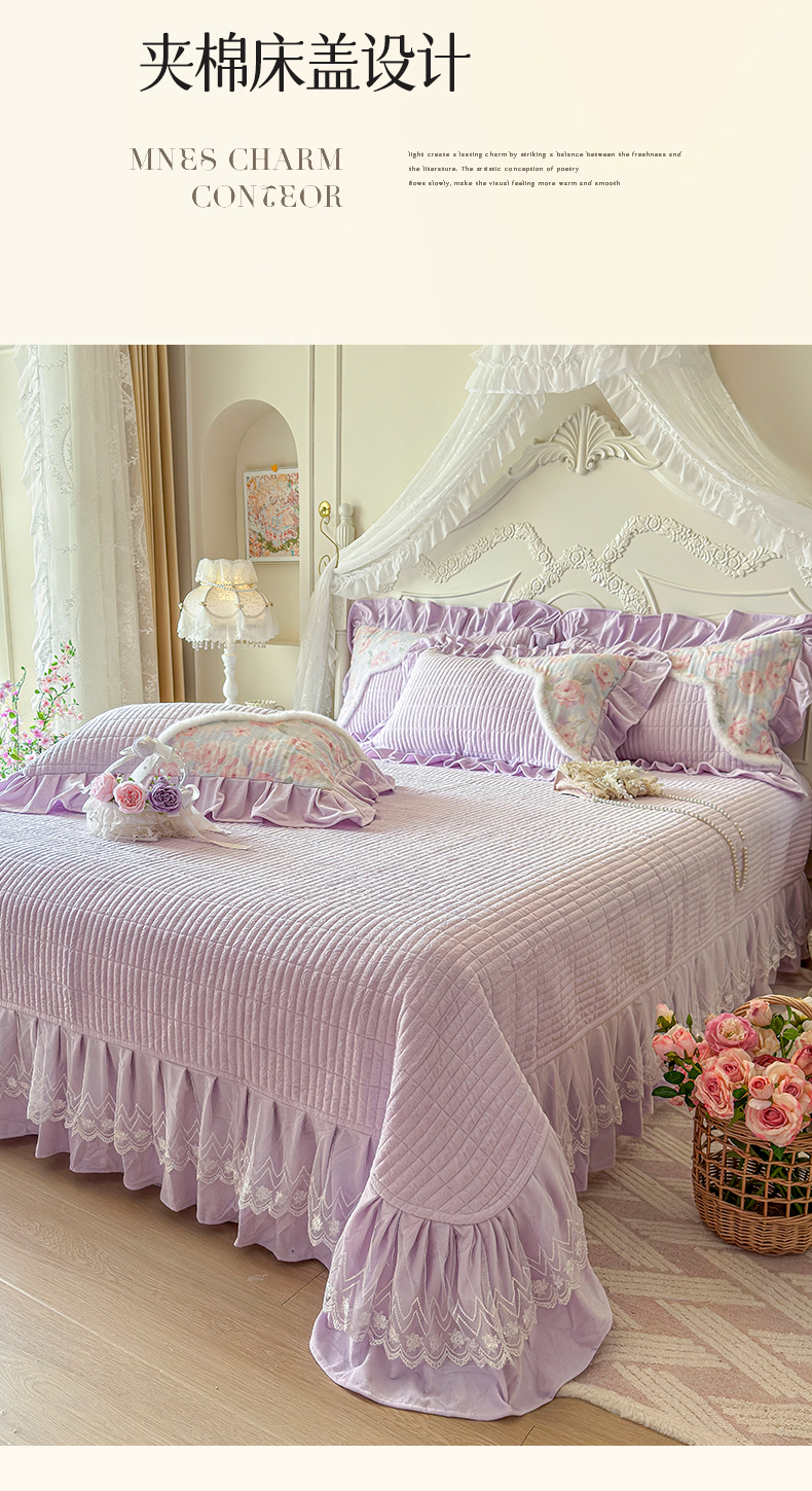 宜凡家纺 2025新款婴儿绒压花撞色双拼夹棉床盖四件套 床盖款-紫幸