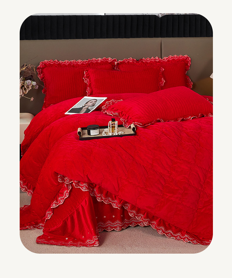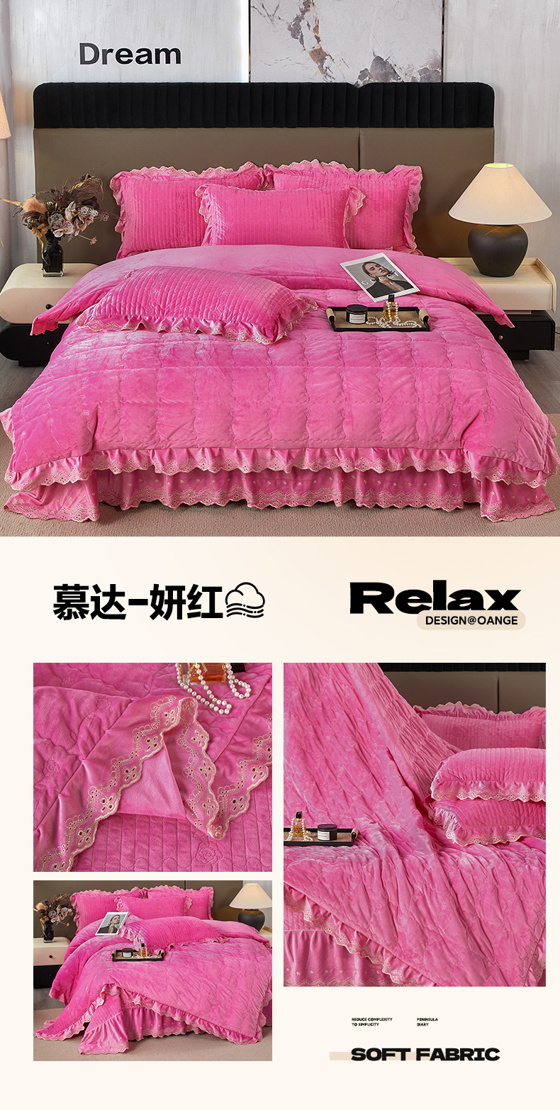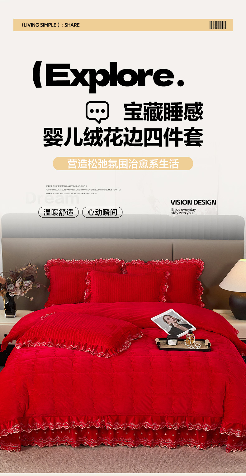 商品名称:青竹苑 2025新款婴儿绒宝宝绒玫瑰刺绣版床盖款四件套 慕达-红