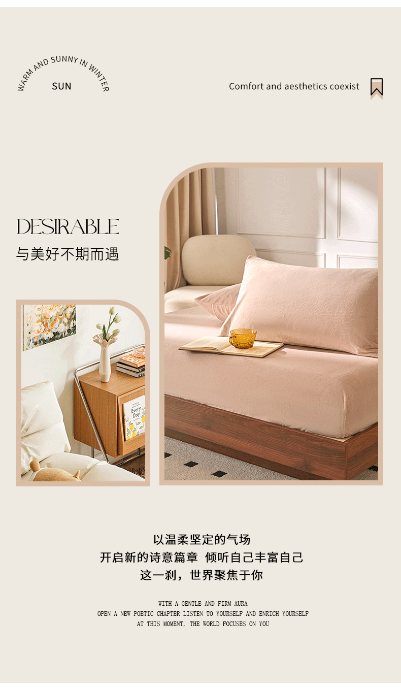 商品名称:618家纺 2025新款樱花绒单品四件套系列-单床笠 浅驼