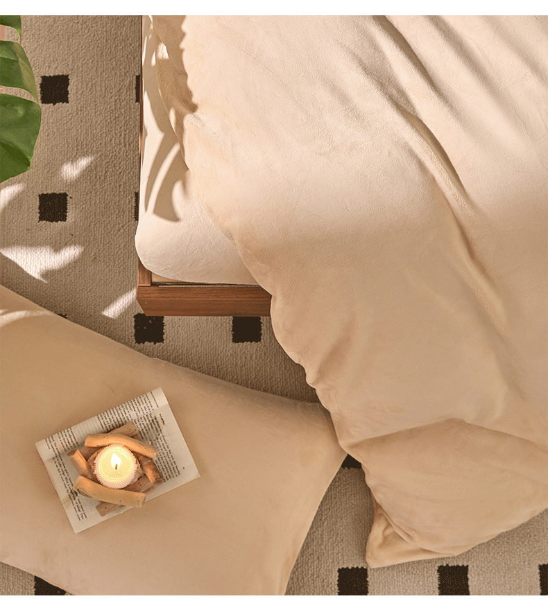 商品名称:618家纺 2025新款樱花绒单品四件套系列-单枕套 奶咖