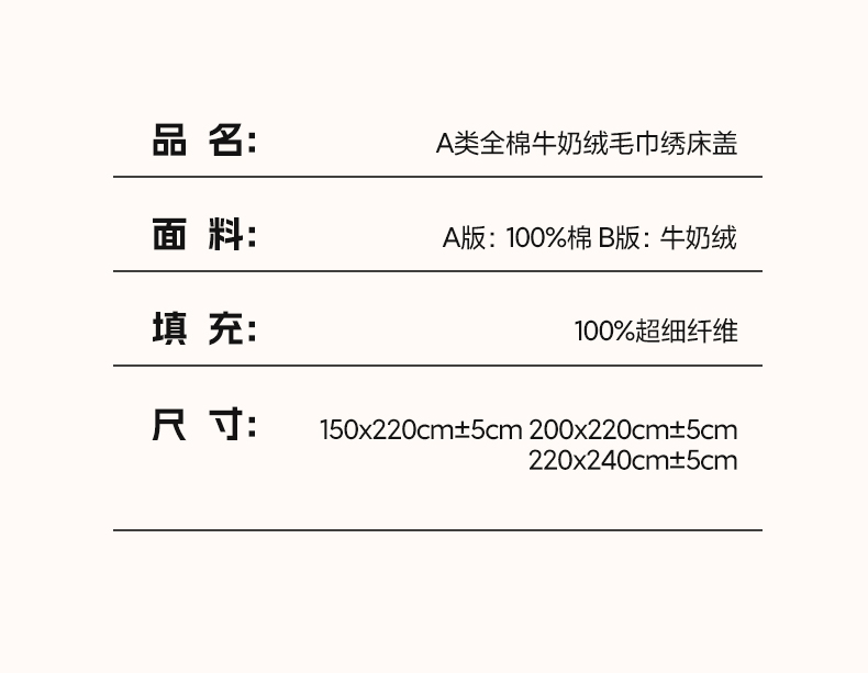 当前位置: 91家纺网 > 商品网购 > 床上用品 > 床盖 > 鑫喜莱家纺 2025新款A版纯棉B版牛奶绒床盖毛巾绣系列单件床褥垫软床垫床盖 组合图仅供展示不可下单
