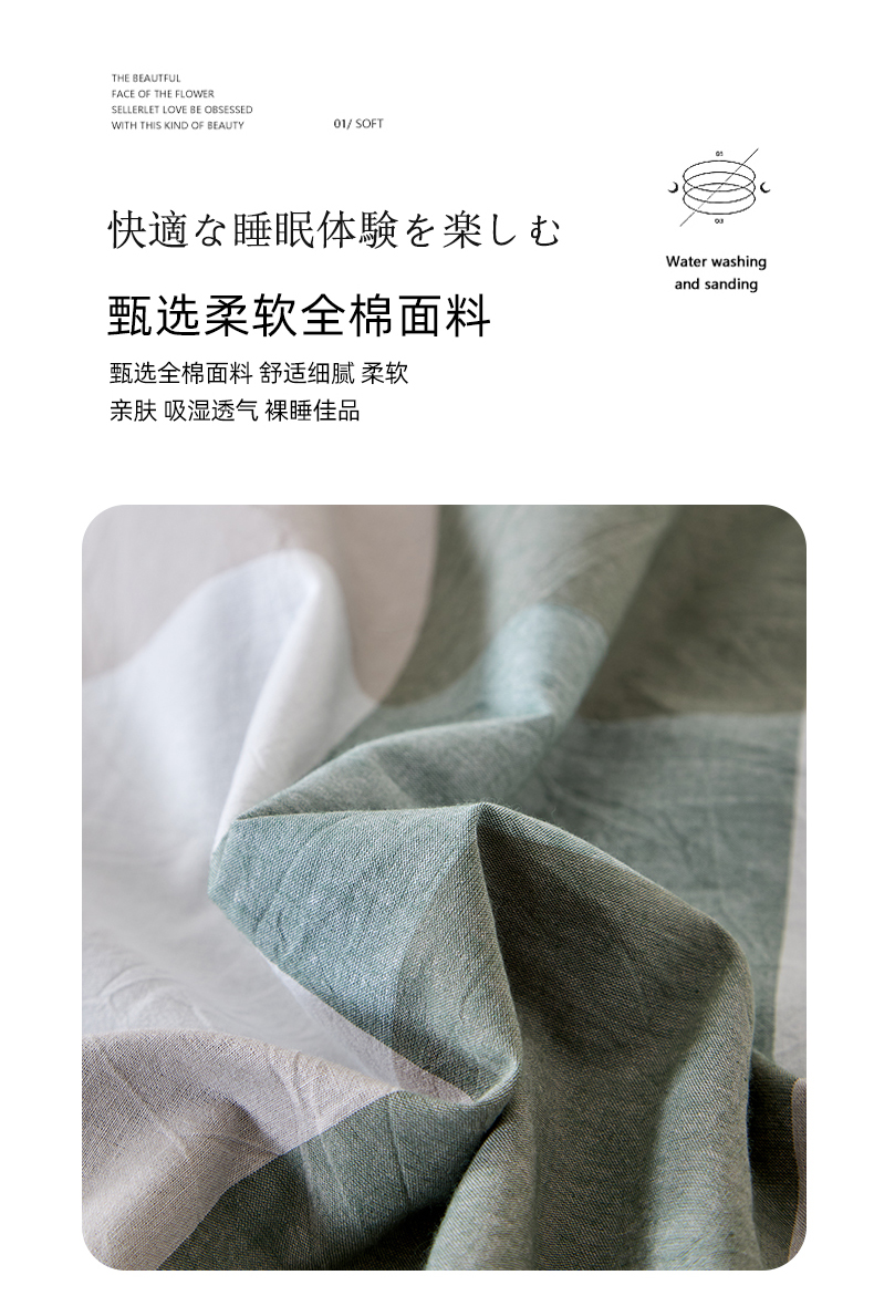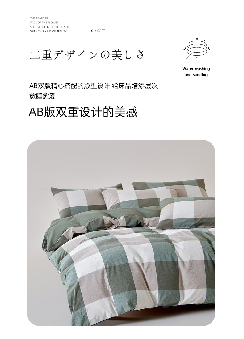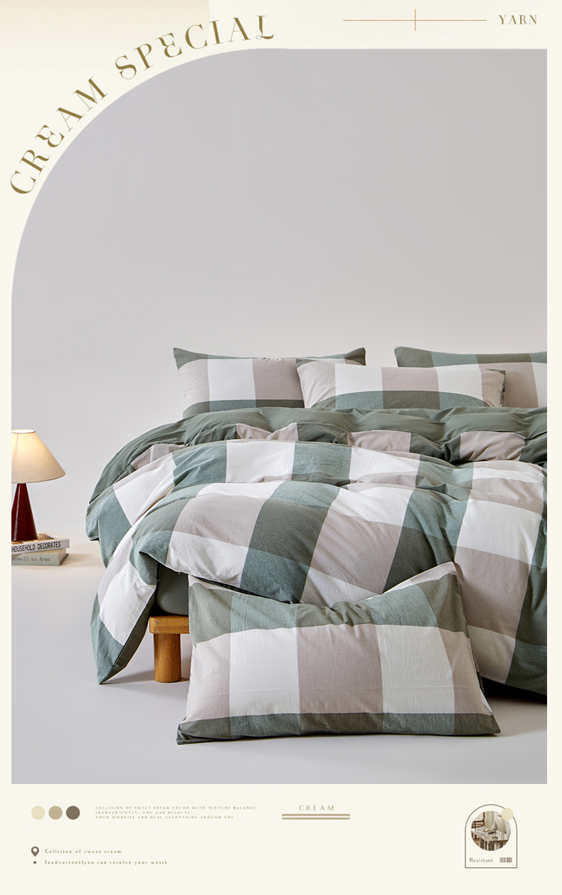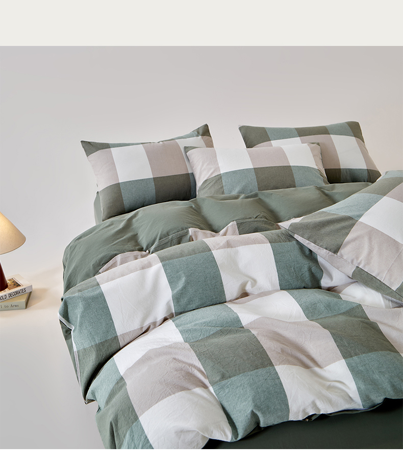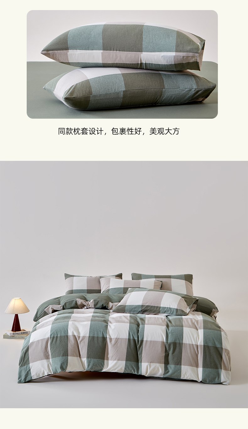 当前位置: 91家纺网 > 商品网购 > 床品套件 > 四件套 > 水洗棉四件套 > 九沐良品 2025新款全棉色织水洗棉无印风四件套 绿大格