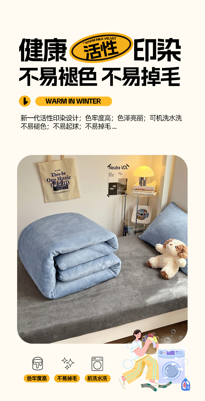商品名称:(总)优卡迪家纺馆 2025新款牛奶绒纯色双拼宿舍床三件套