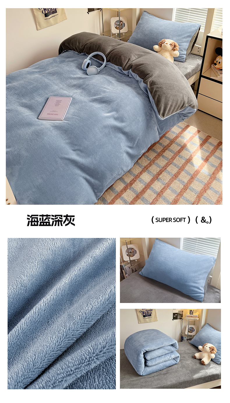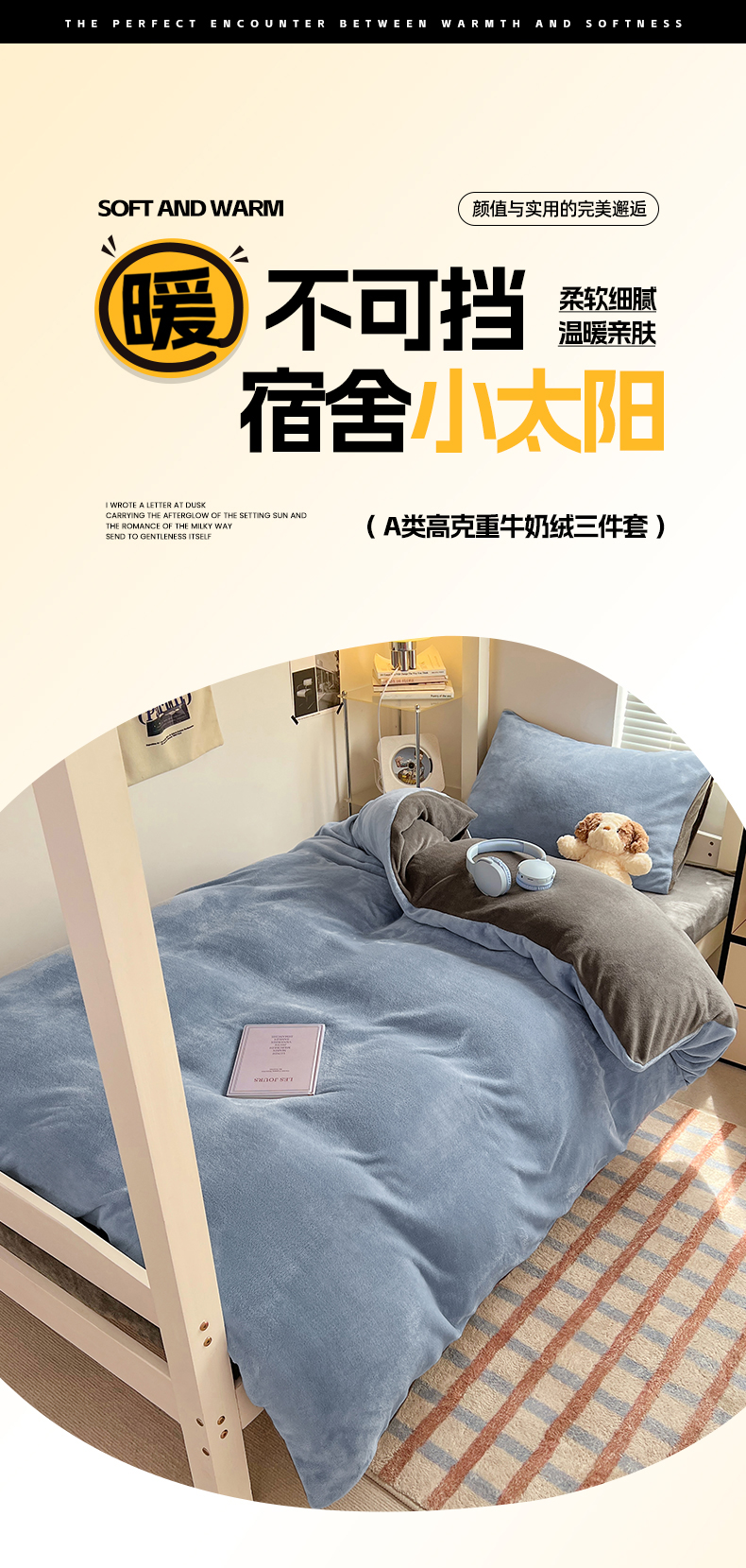 (总)优卡迪家纺馆 2025新款牛奶绒纯色双拼宿舍床三件套