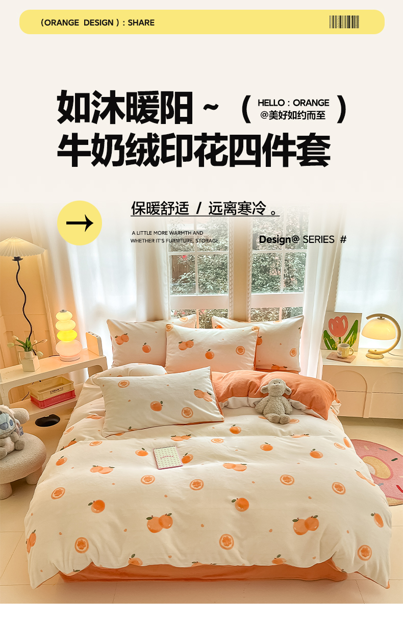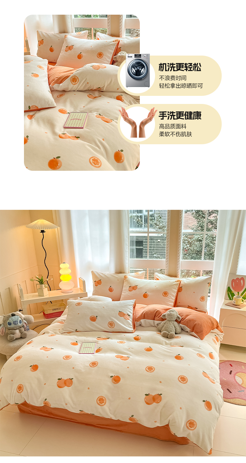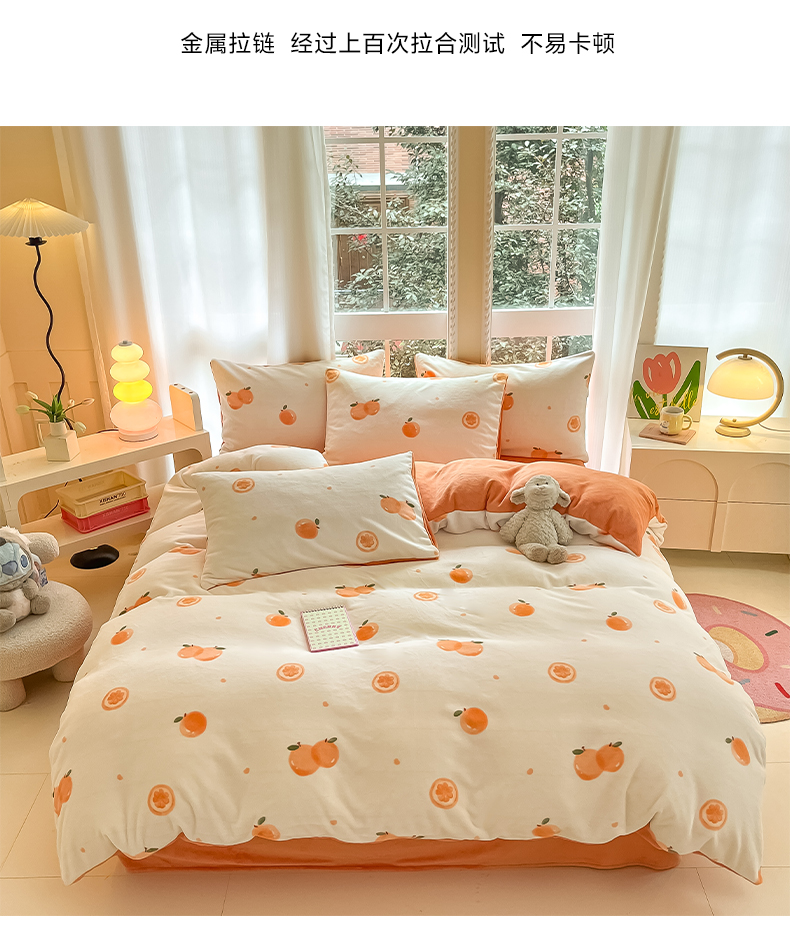当前位置: 91家纺网 > 商品网购 > 床品套件 > 四件套 > 牛奶绒四件套 > 佳汐蓝家纺 2025新款190克高克重牛奶绒印花四件套 橙心如意+爱玛橙