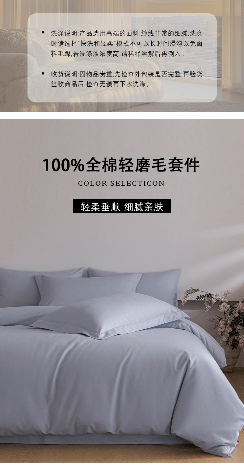 当前位置: 91家纺网 > 商品网购 > 床品套件 > 四件套 > 全棉普通四件套 > 618家纺 2025新款全棉100支磨毛单品四件套系列-四件套 灰蓝