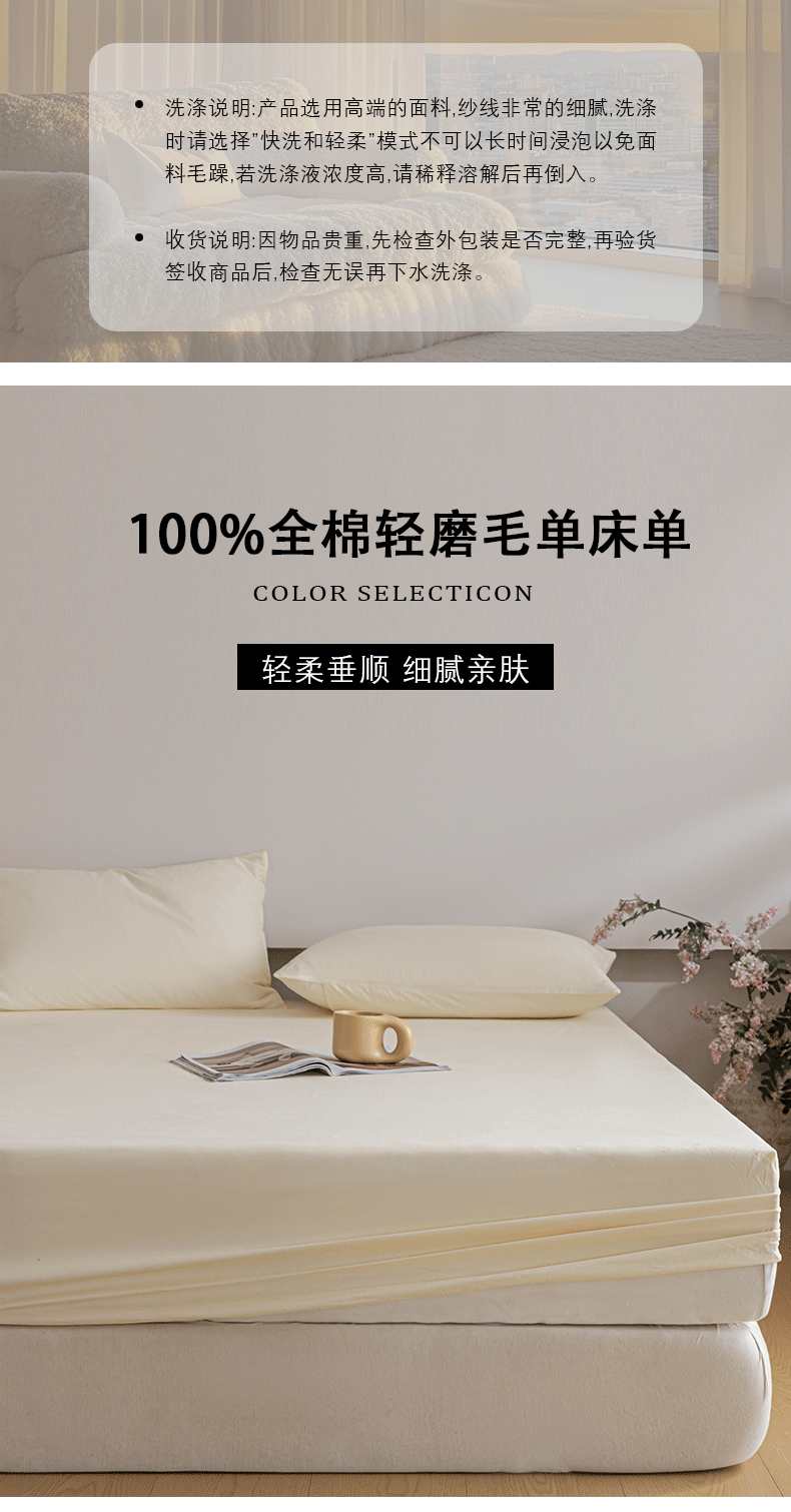 商品名称:618家纺 2025新款全棉100支磨毛单品四件套系列-单床笠 元气白桃