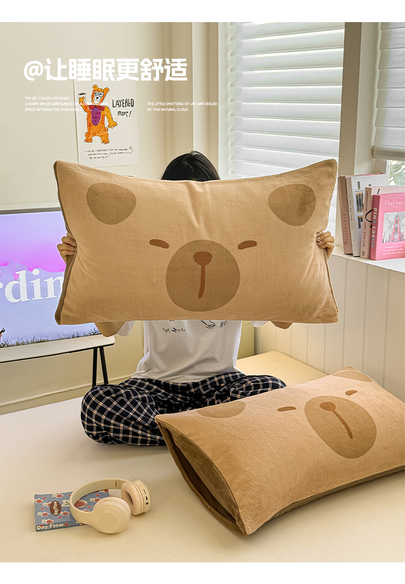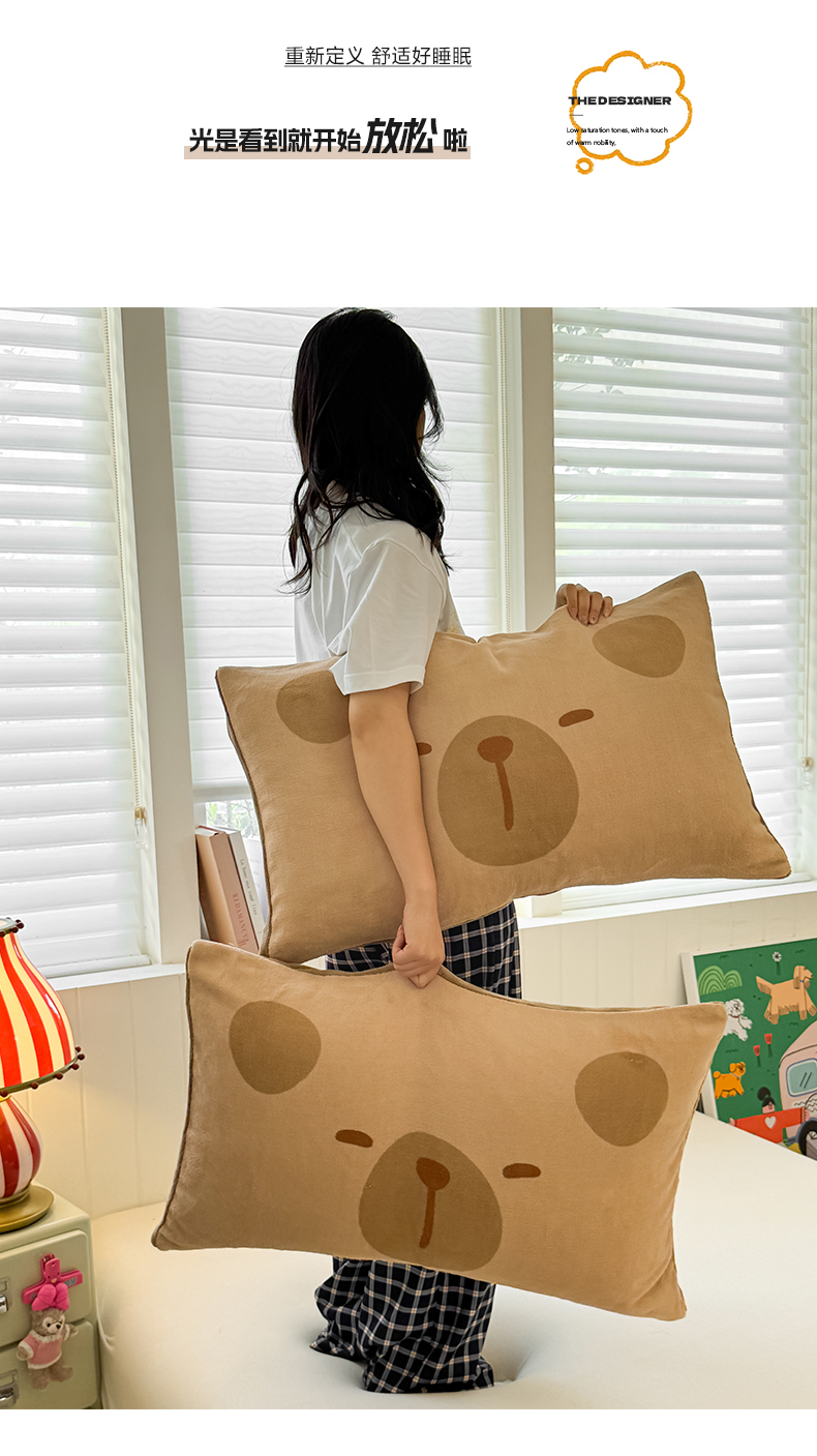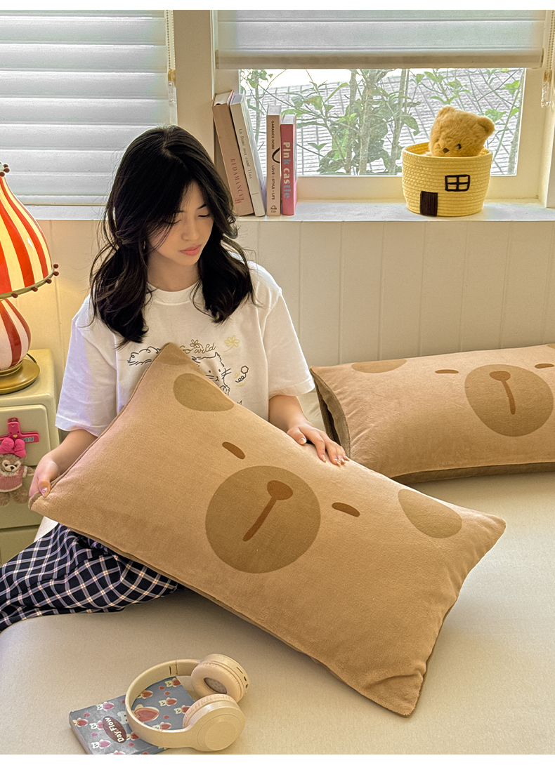 佳汐蓝家纺 2025新款牛奶绒卡通大版枕套 卡比巴拉