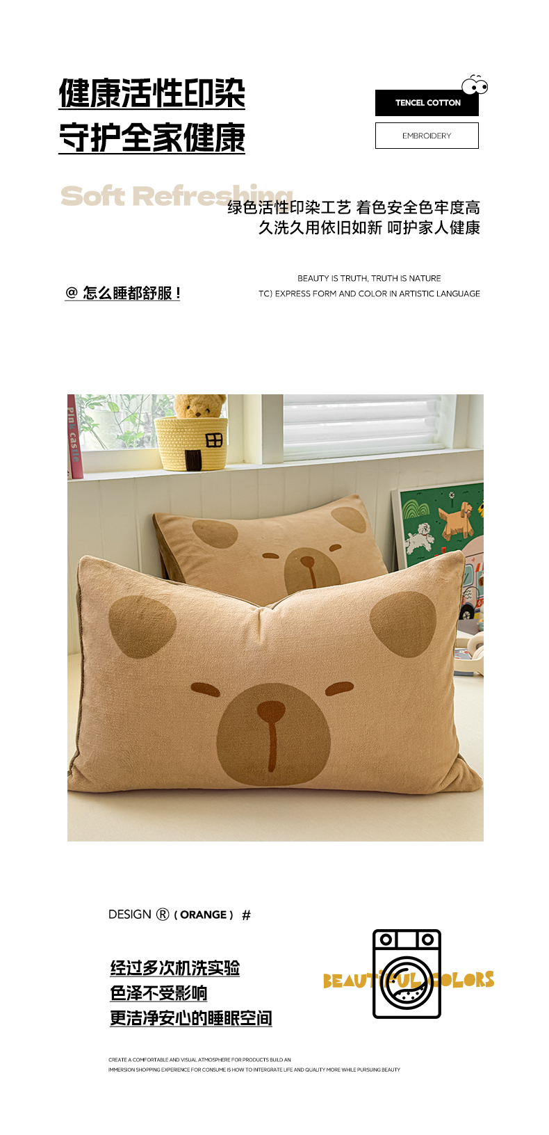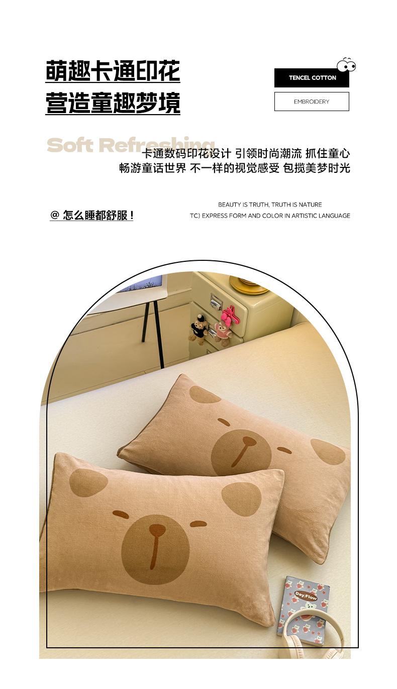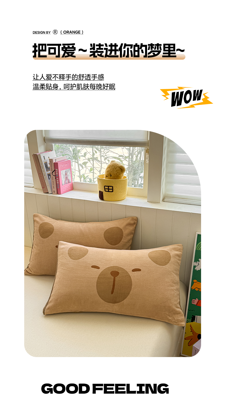 佳汐蓝家纺 2025新款牛奶绒卡通大版枕套 卡比巴拉