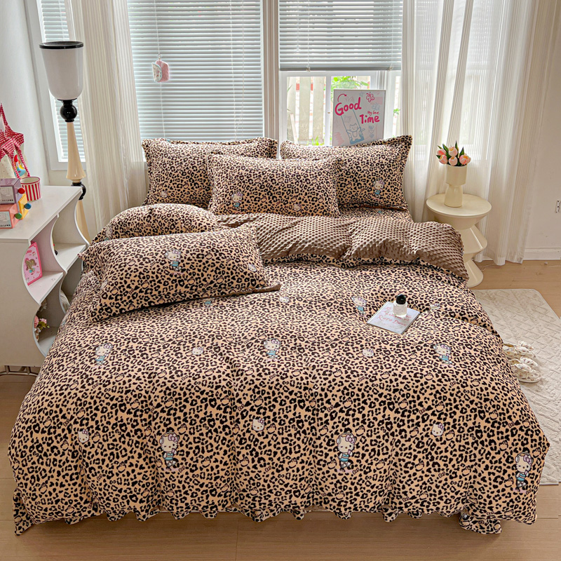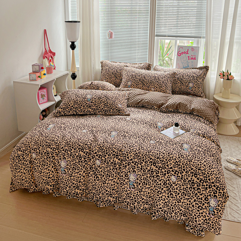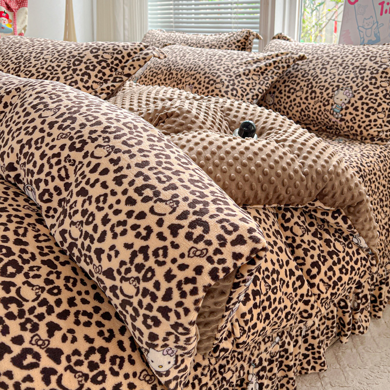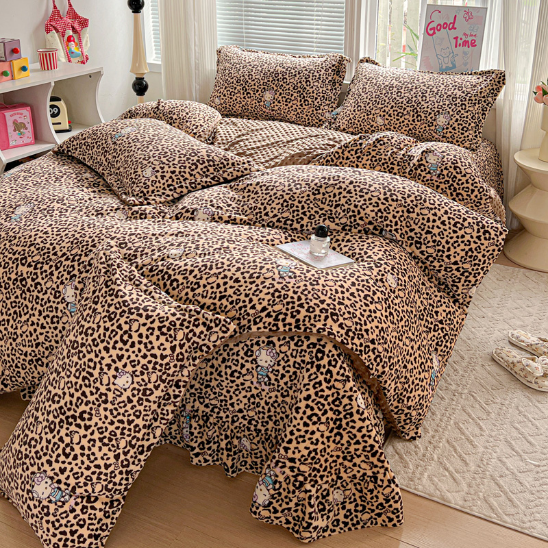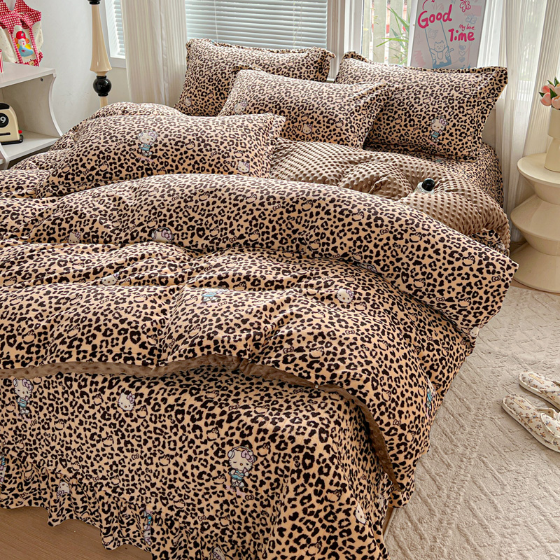 当前位置: 91家纺网 > 商品网购 > 床品套件 > 四件套 > 牛奶绒四件套 > 一比一 2025新款加厚保暖豆豆牛奶绒床盖款四件套豹纹KT- 咖