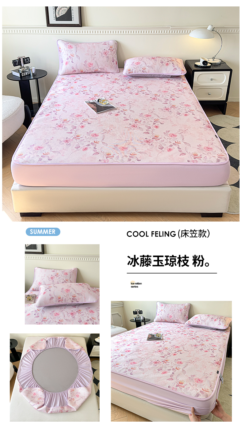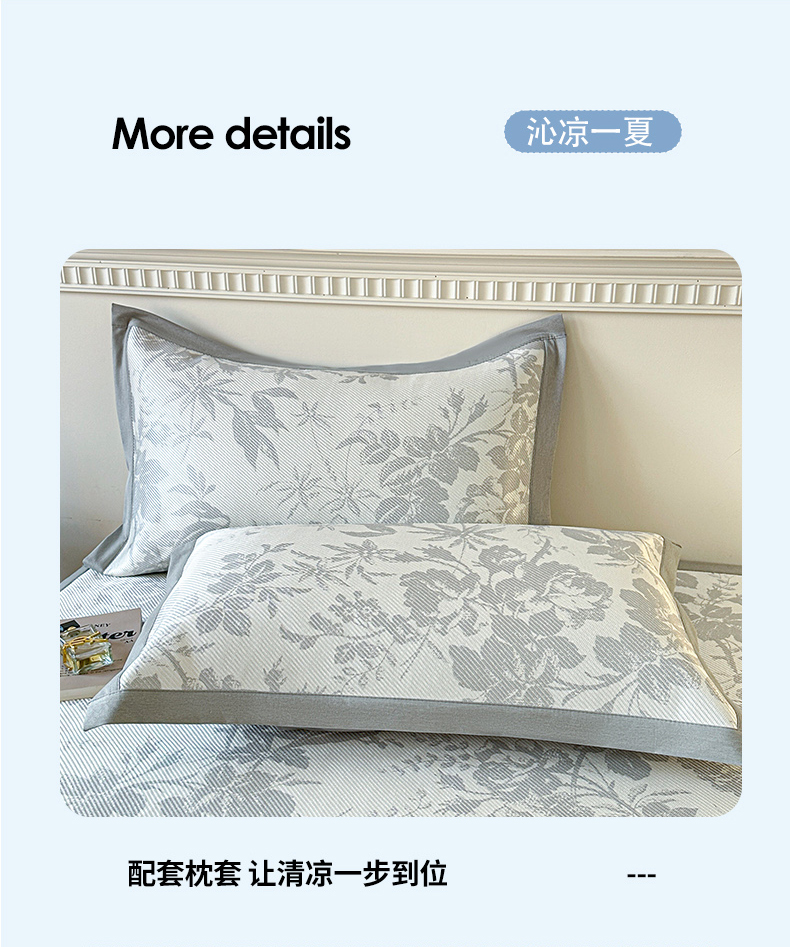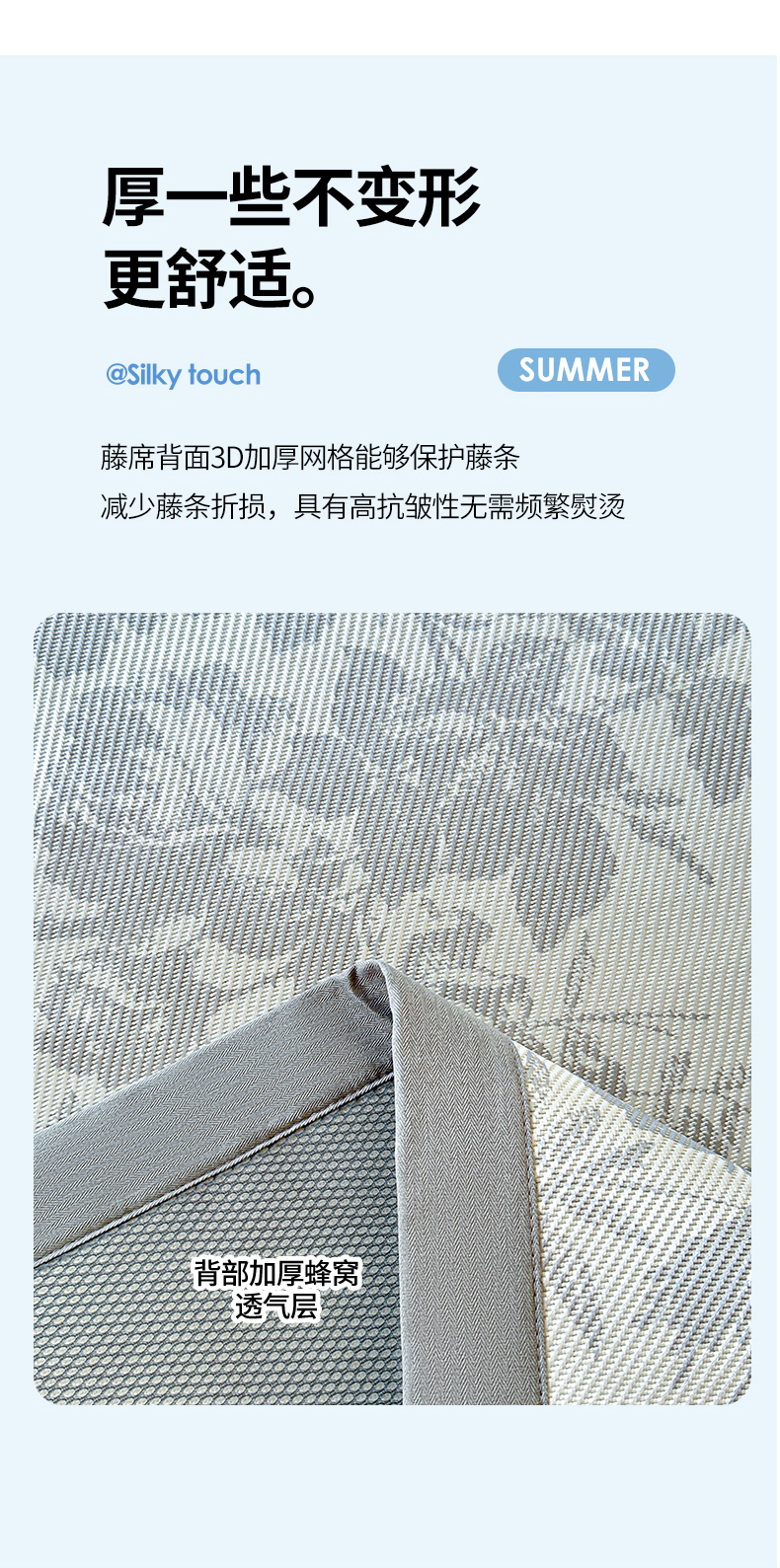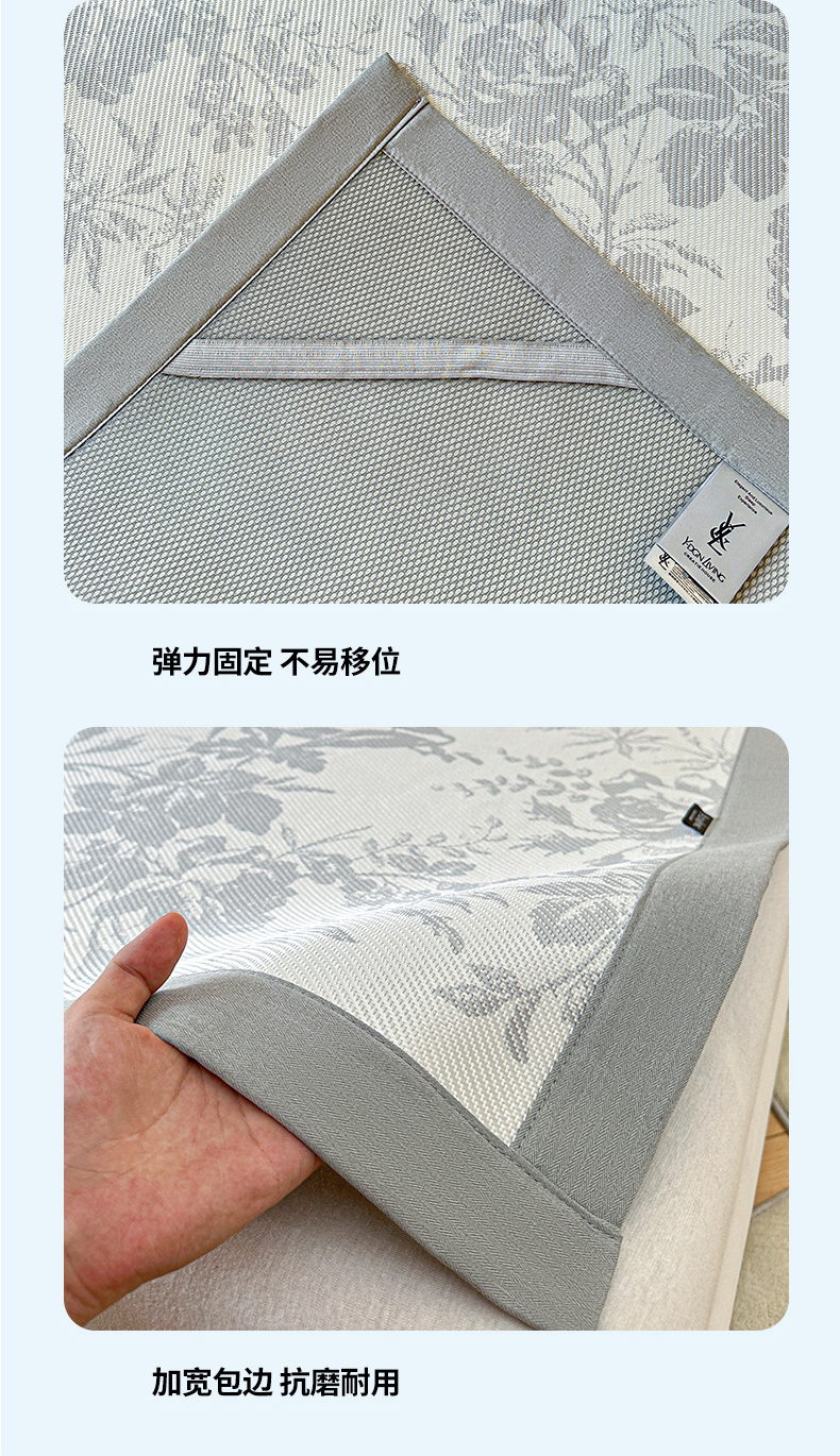 商品名称:宜代光年 2025新款数码印花冰藤席 床席-冰藤繁花 灰