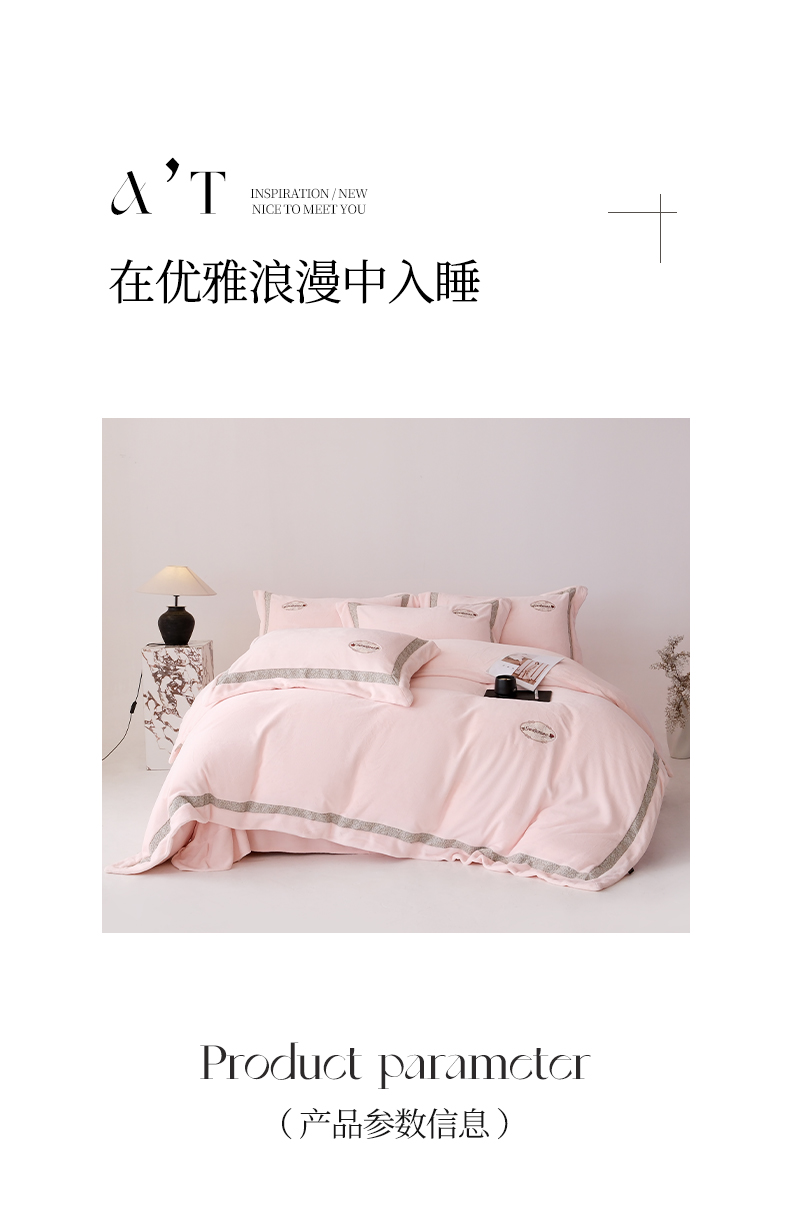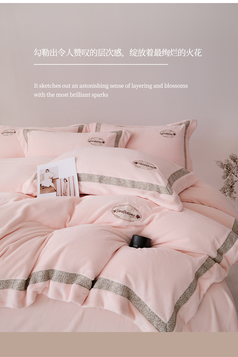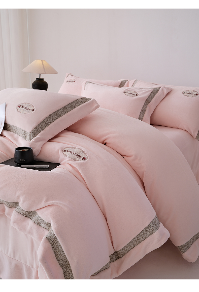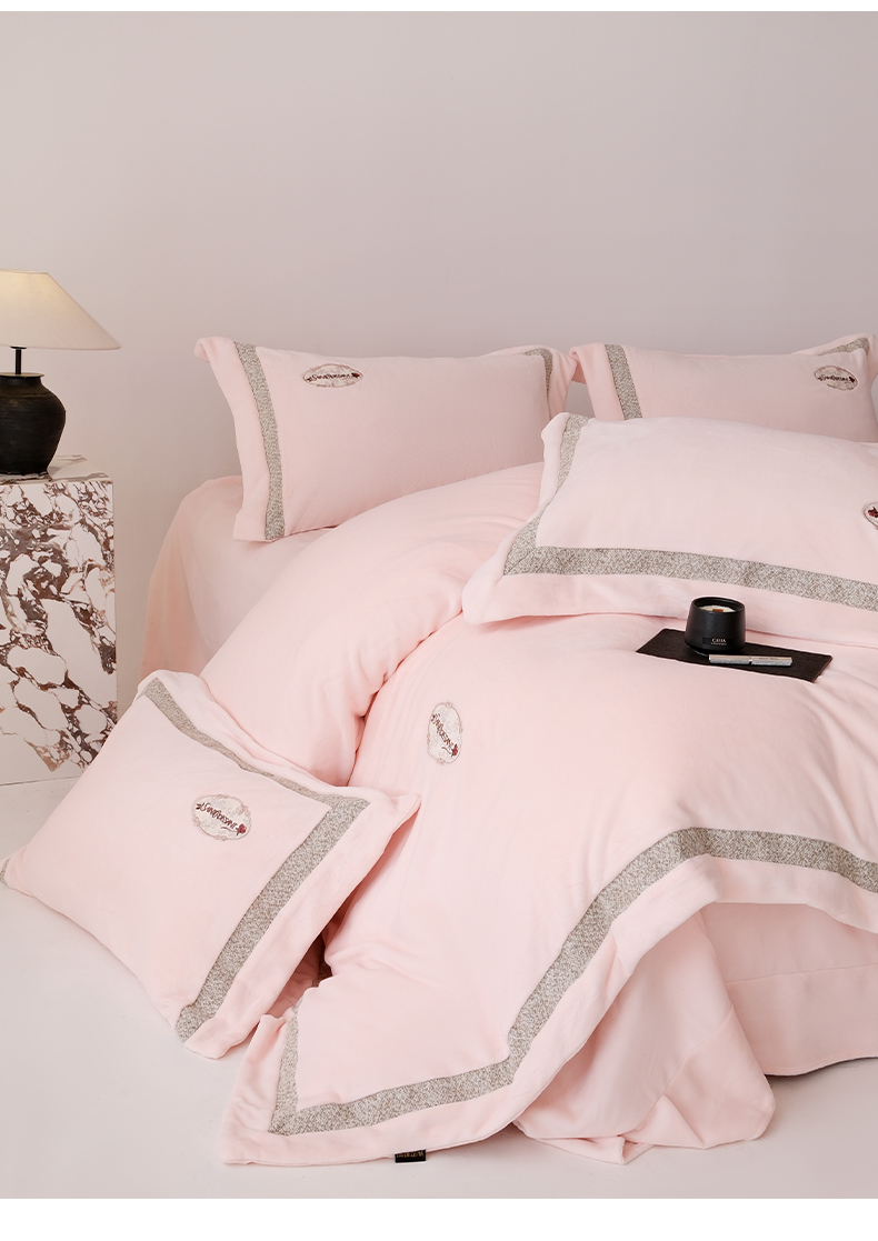 商品名称:(总)宅家居 2025新款轻奢小香风高端保暖绒双拼角刺绣全消光高克重牛奶绒四件套-雾林玫瑰