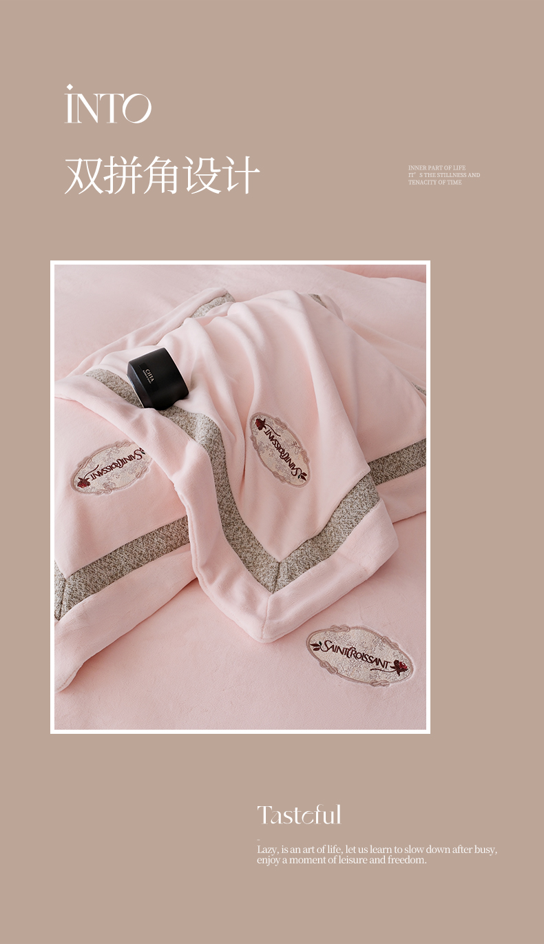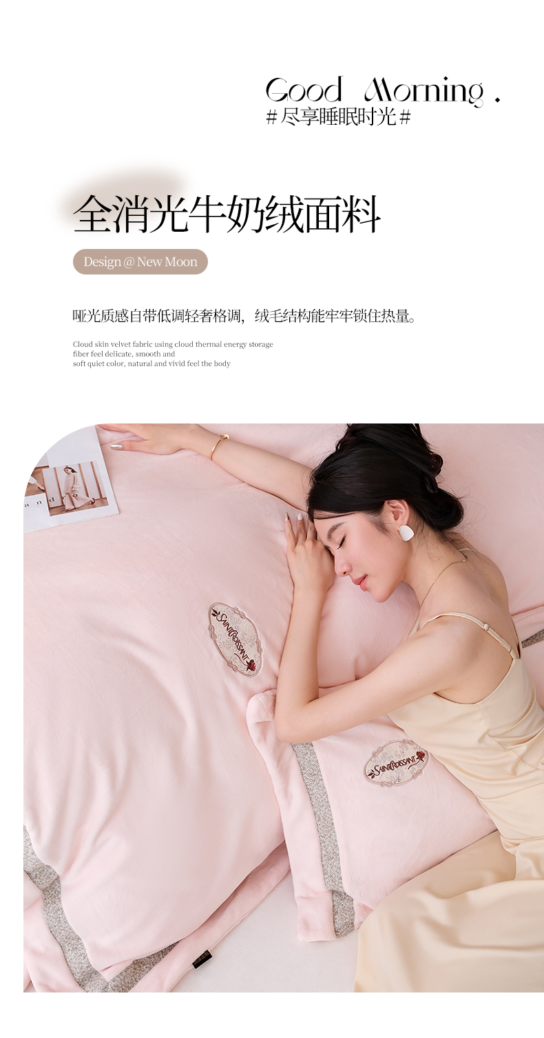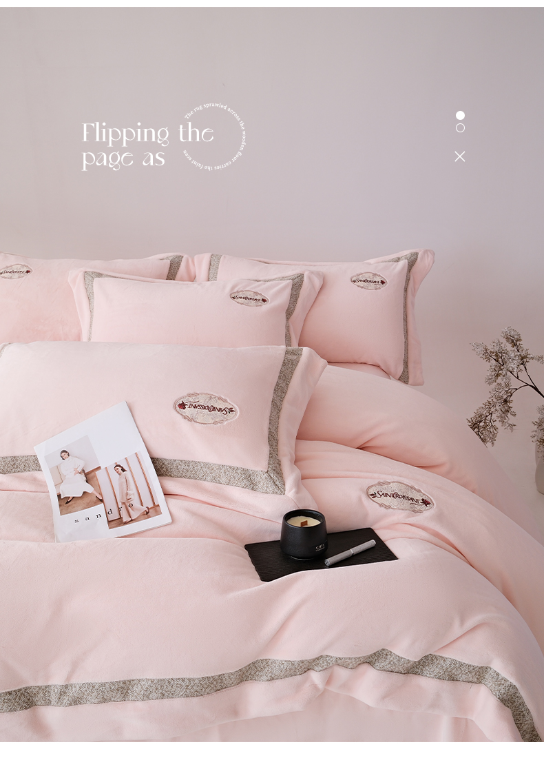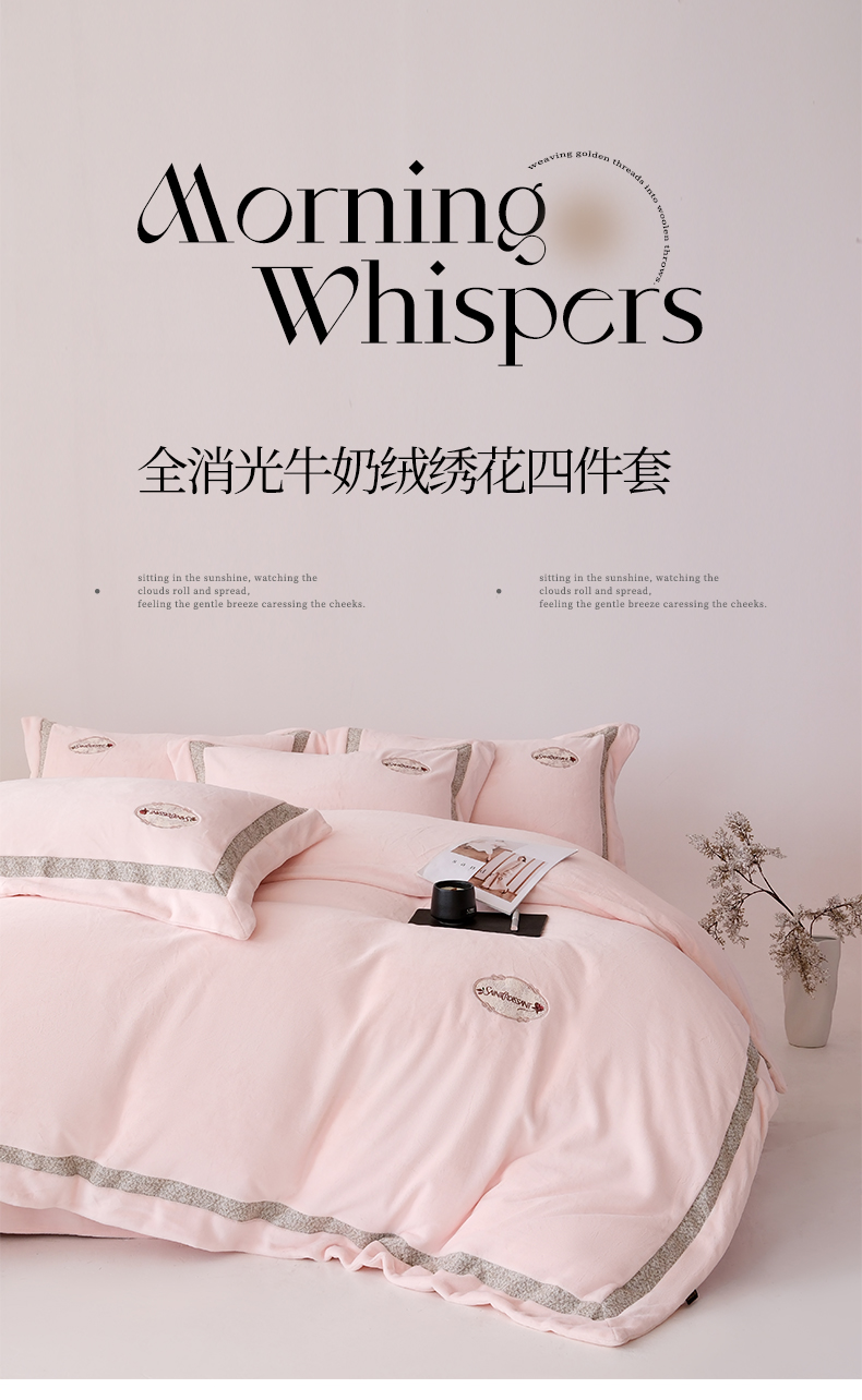 商品名称:(总)宅家居 2025新款轻奢小香风高端保暖绒双拼角刺绣全消光高克重牛奶绒四件套-雾林玫瑰