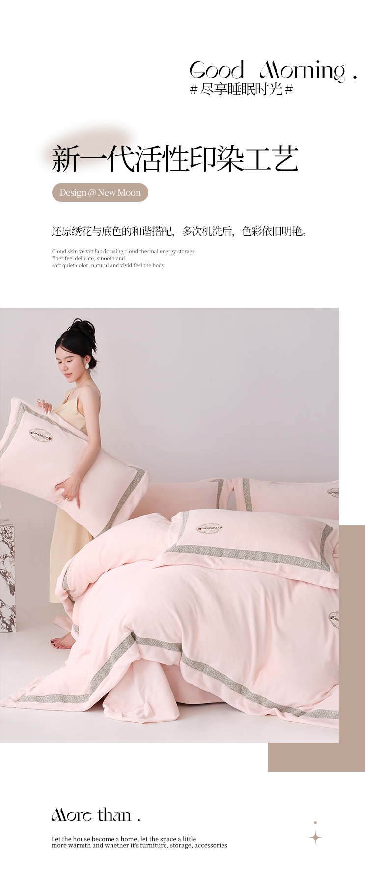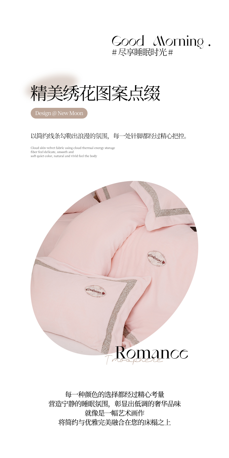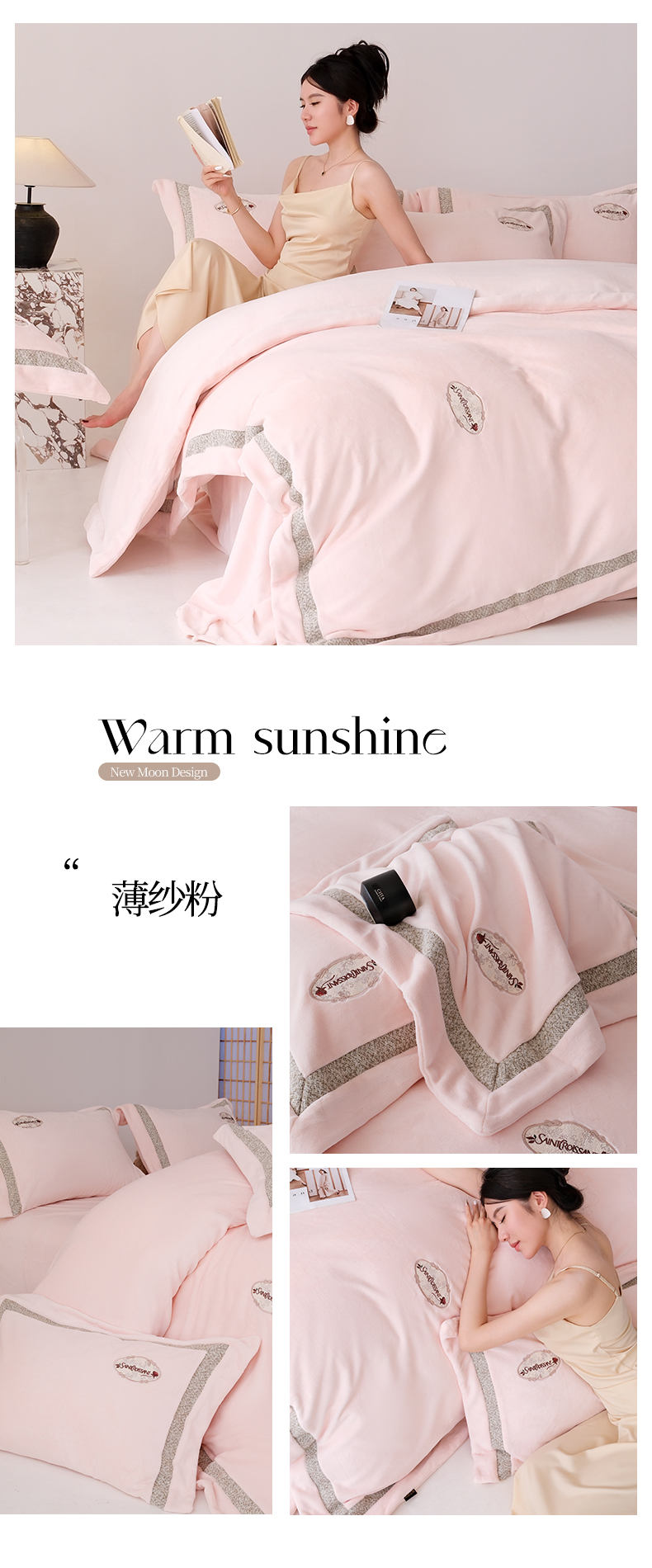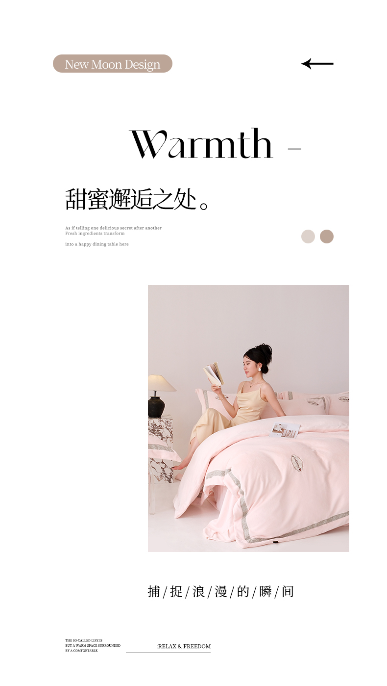 商品名称:(总)宅家居 2025新款轻奢小香风高端保暖绒双拼角刺绣全消光高克重牛奶绒四件套-雾林玫瑰