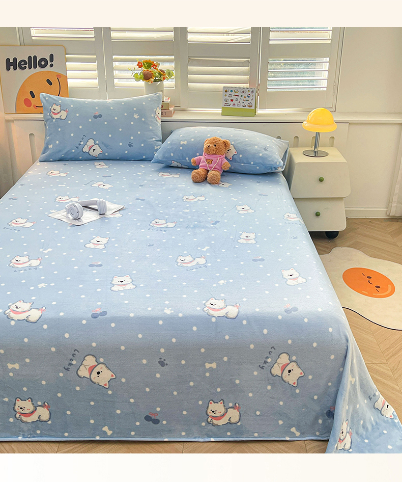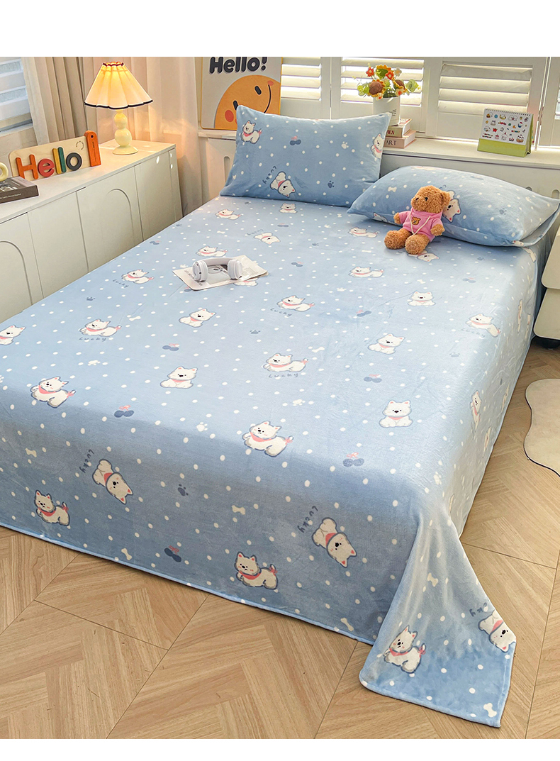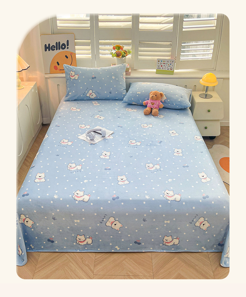 爱屋及屋 2025新款牛奶绒印花床单 小狗点点
