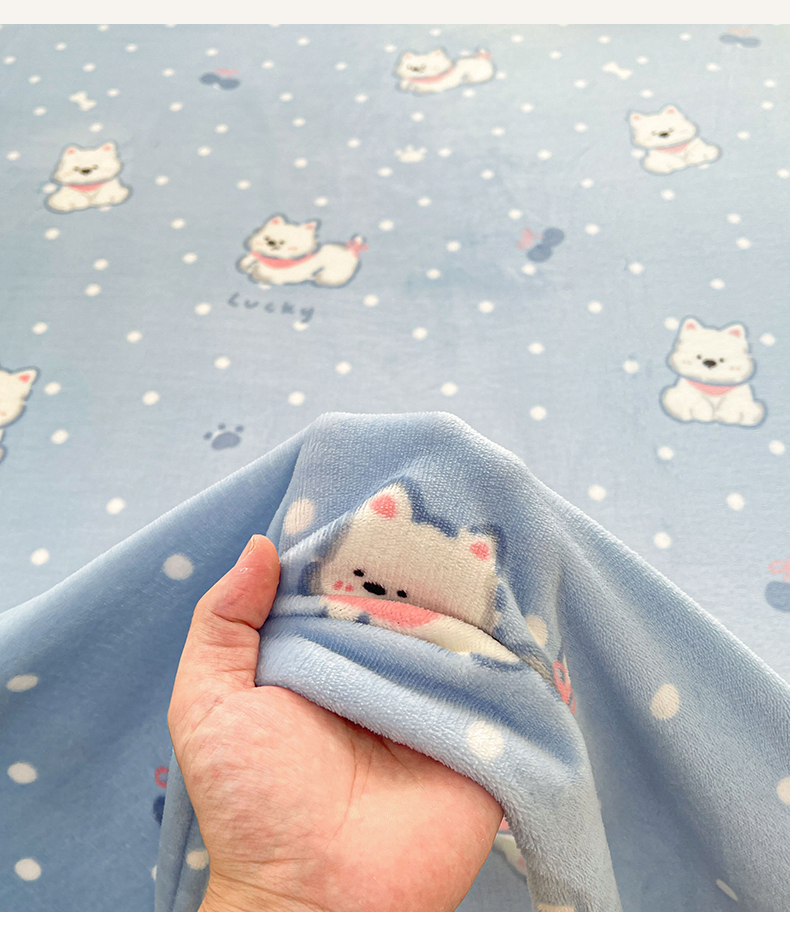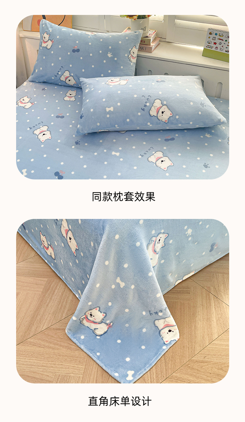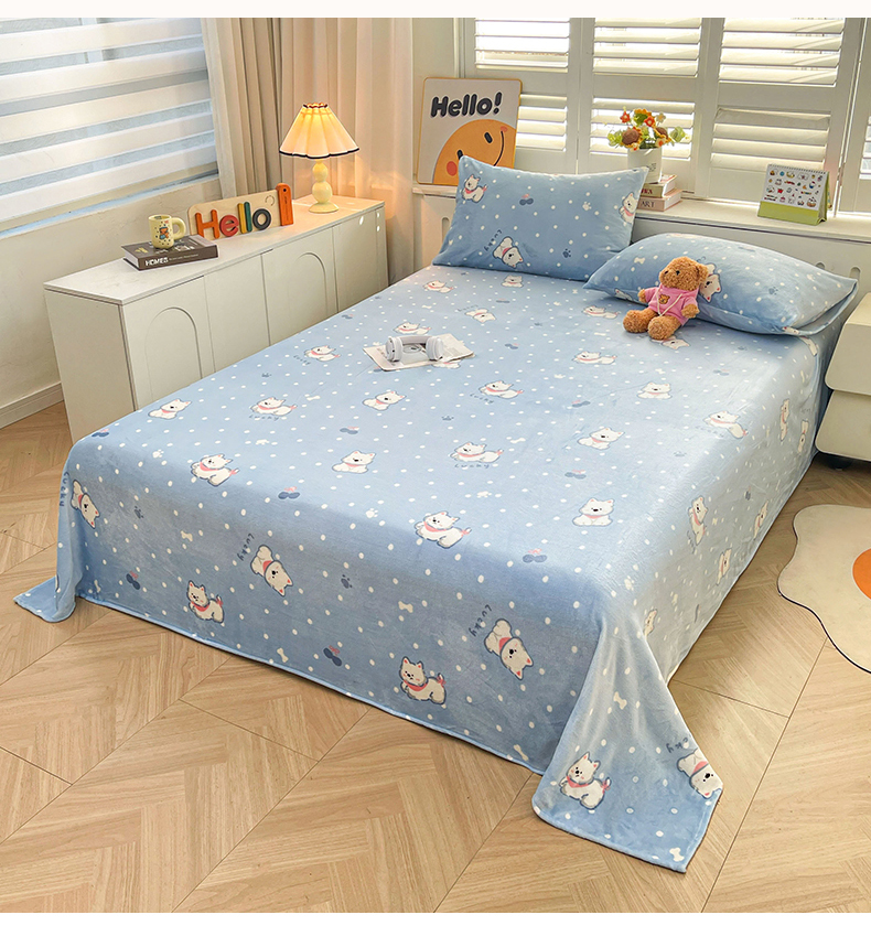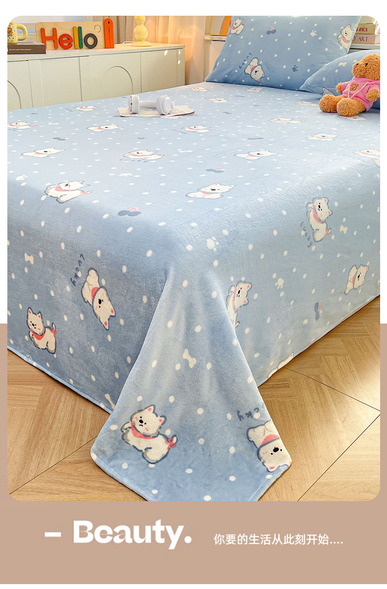 • 91家纺网 家纺一手货源 找家纺 爱屋及屋 2025新款牛奶绒印花床单 小狗点点