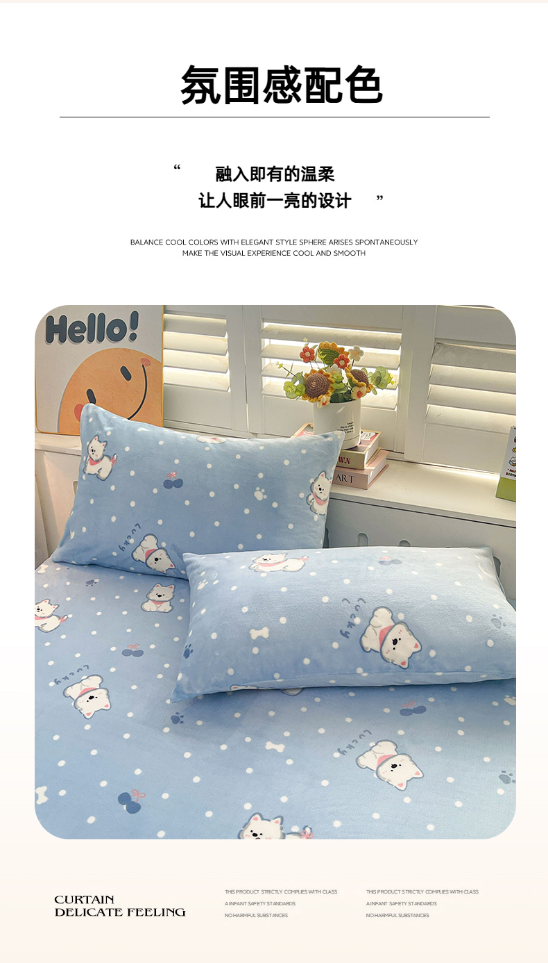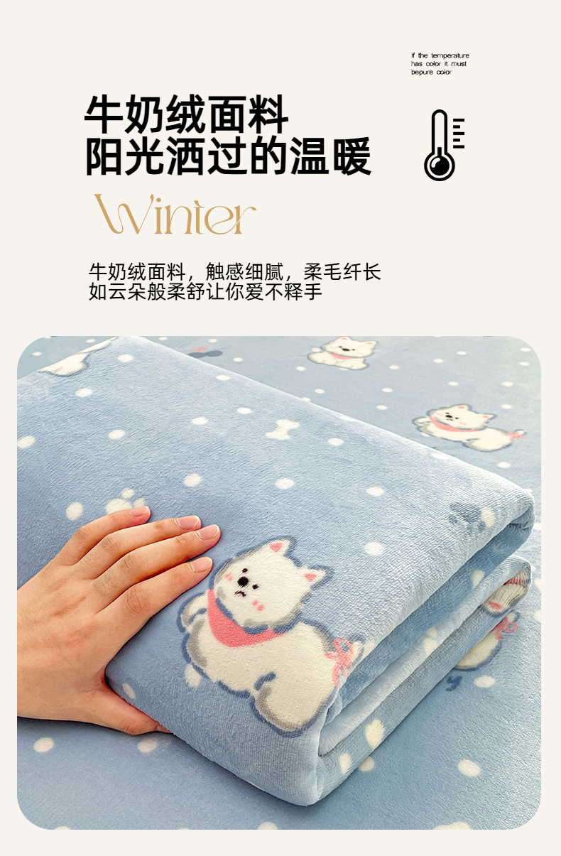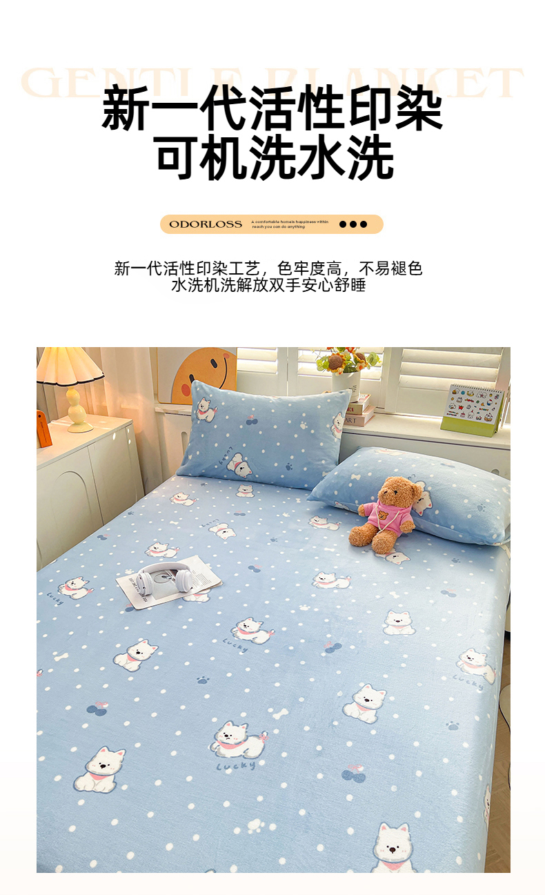 • 91家纺网 家纺一手货源 找家纺 爱屋及屋 2025新款牛奶绒印花床单 小狗点点