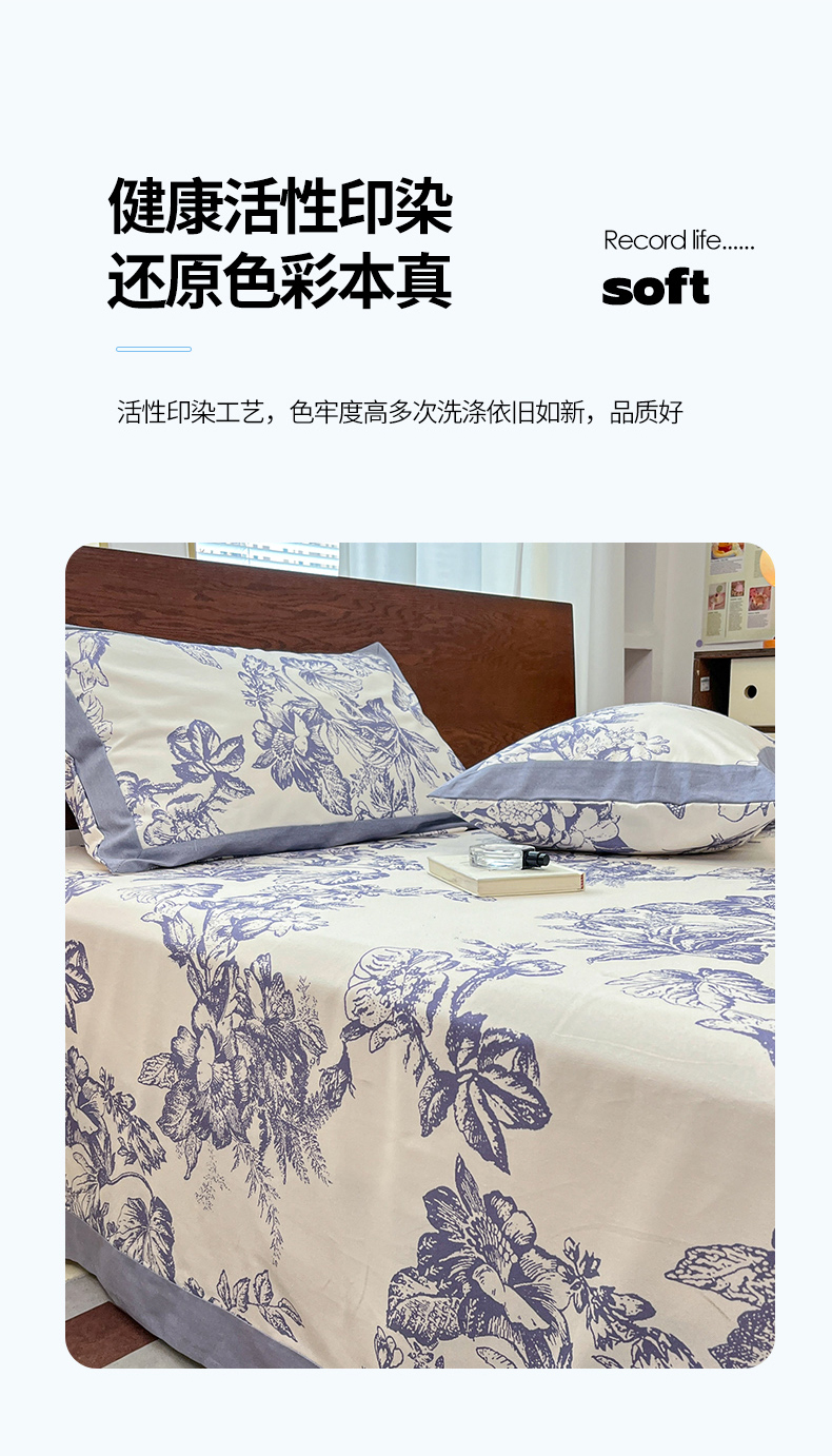 宜代光年 2025新款全棉老粗布数码印花拼角工艺床单床笠 床笠-似锦