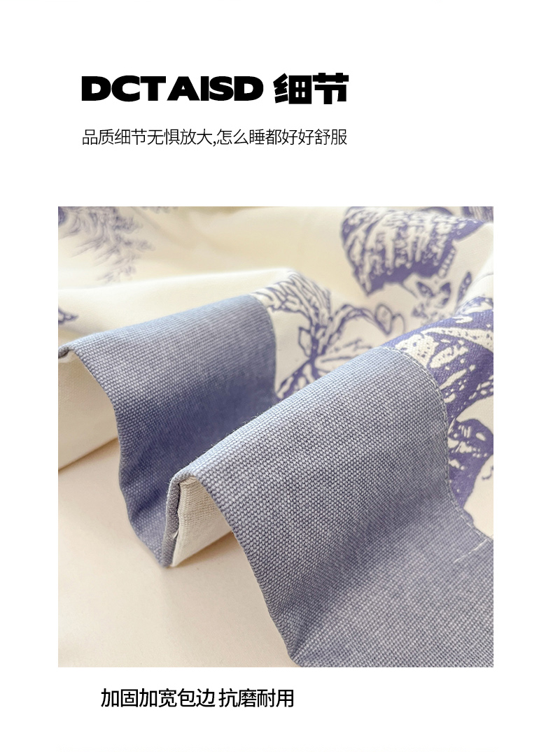 商品名称:宜代光年 2025新款全棉老粗布数码印花拼角工艺床单床笠 床笠-似锦