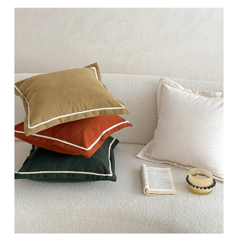 (总)美茉家居 2025新款加厚高端沙发布雪尼尔滚边方枕抱枕,缎面红,孔雀绿,南瓜橘,烟雨灰,珍珠白