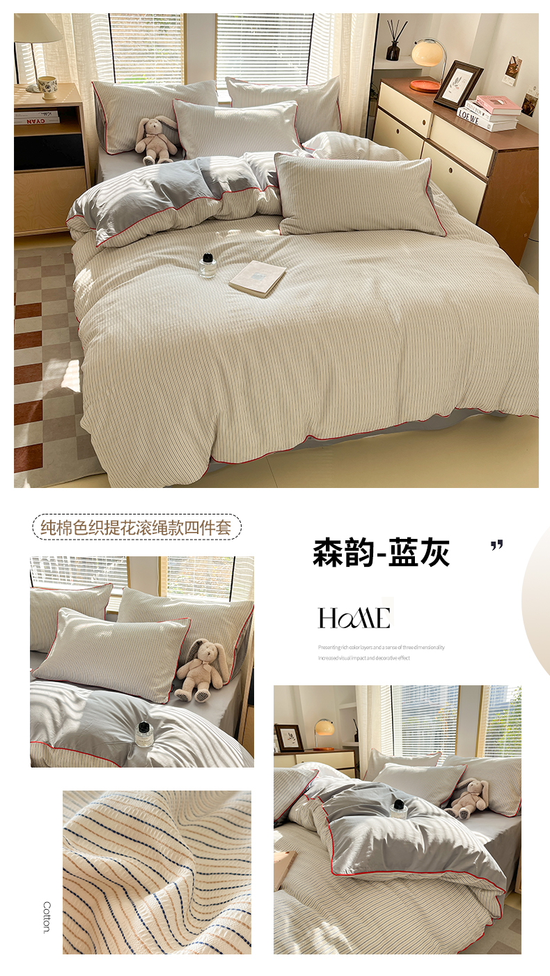 宜代光年 2025新款全棉纯棉色织提花滚绳款四件套-森韵 森韵-天蓝