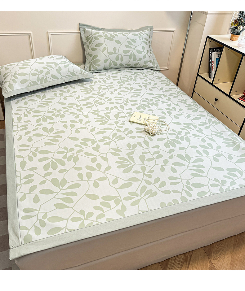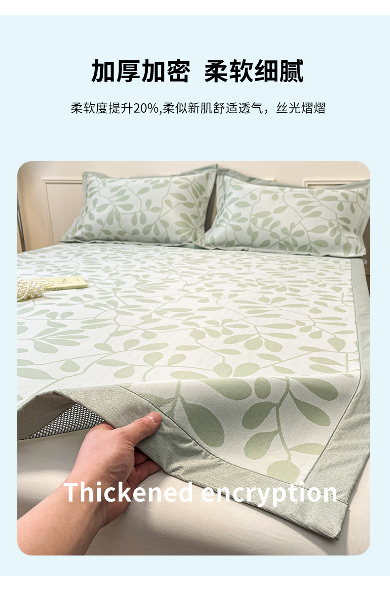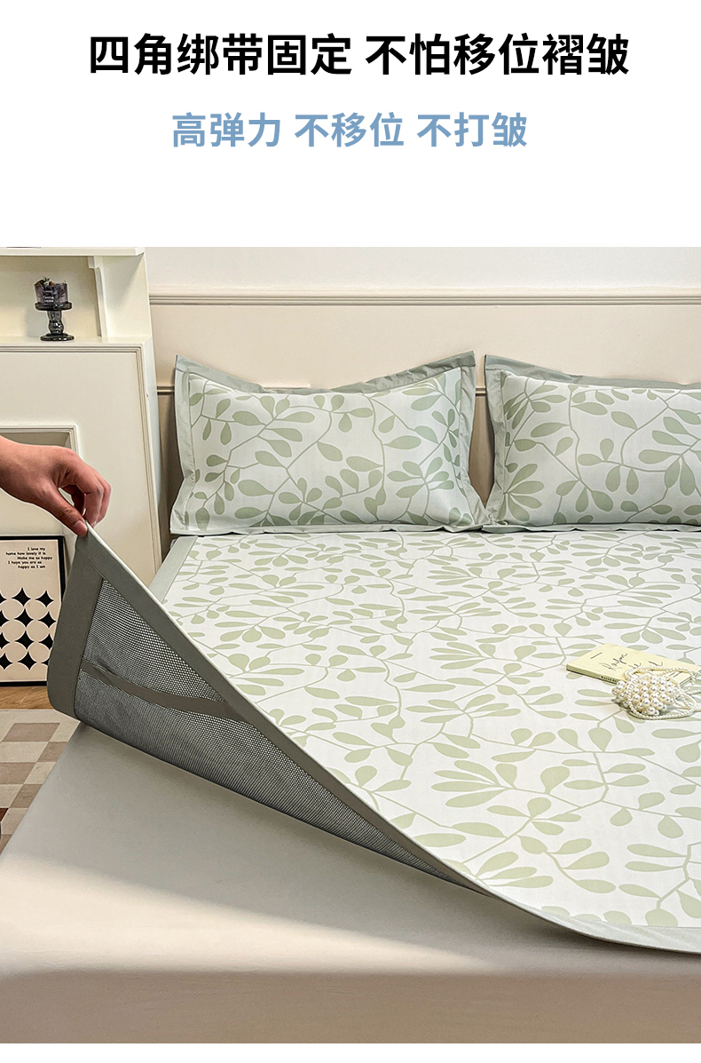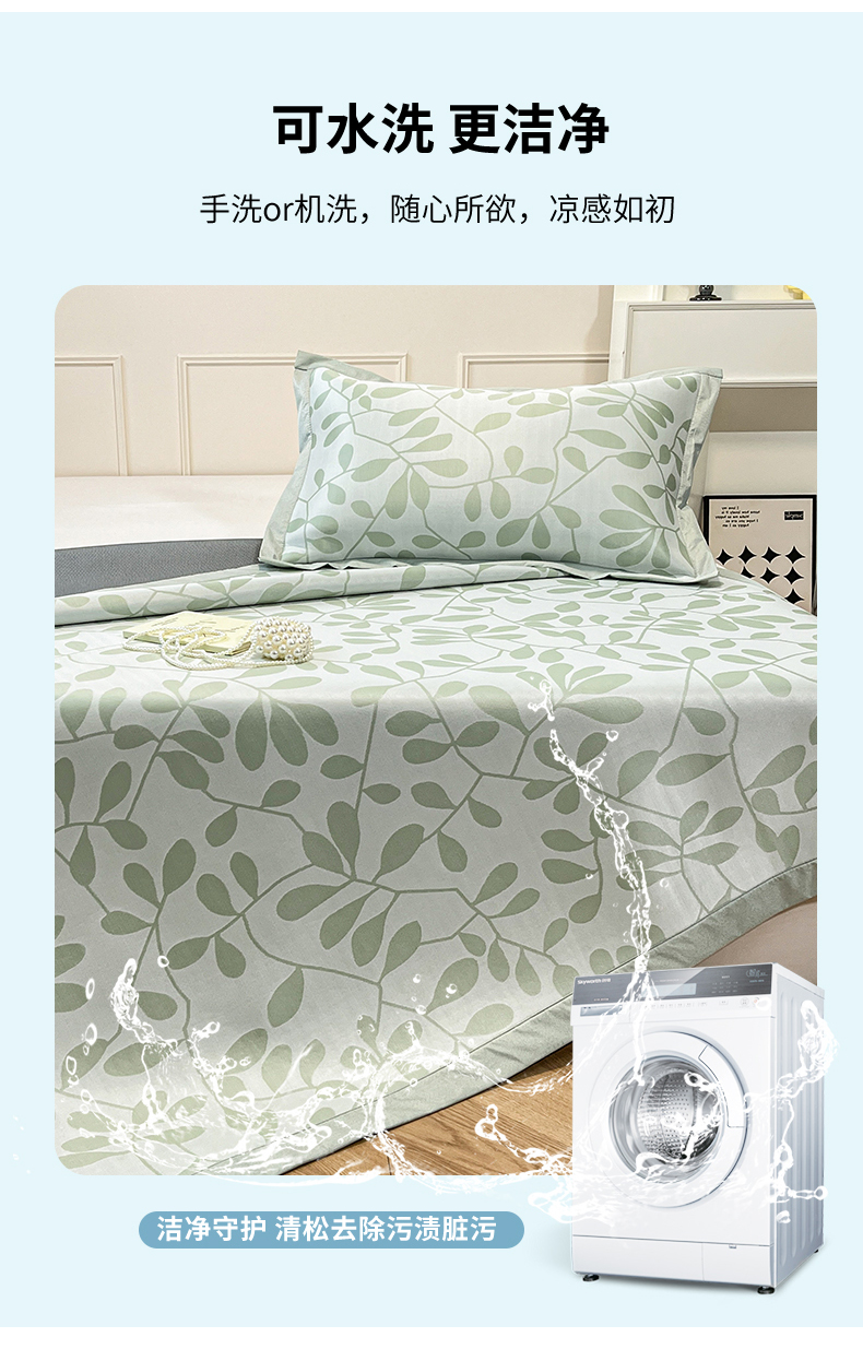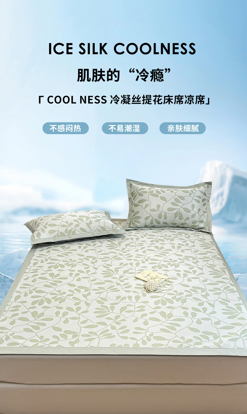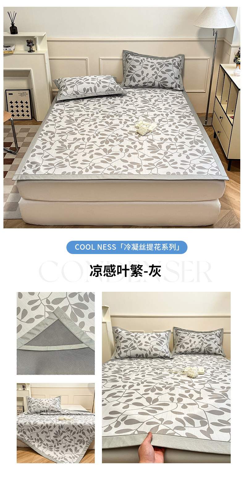 商品名称:宜代光年 2025新款冷凝丝可水洗提花凉感席 凉感叶繁-绿