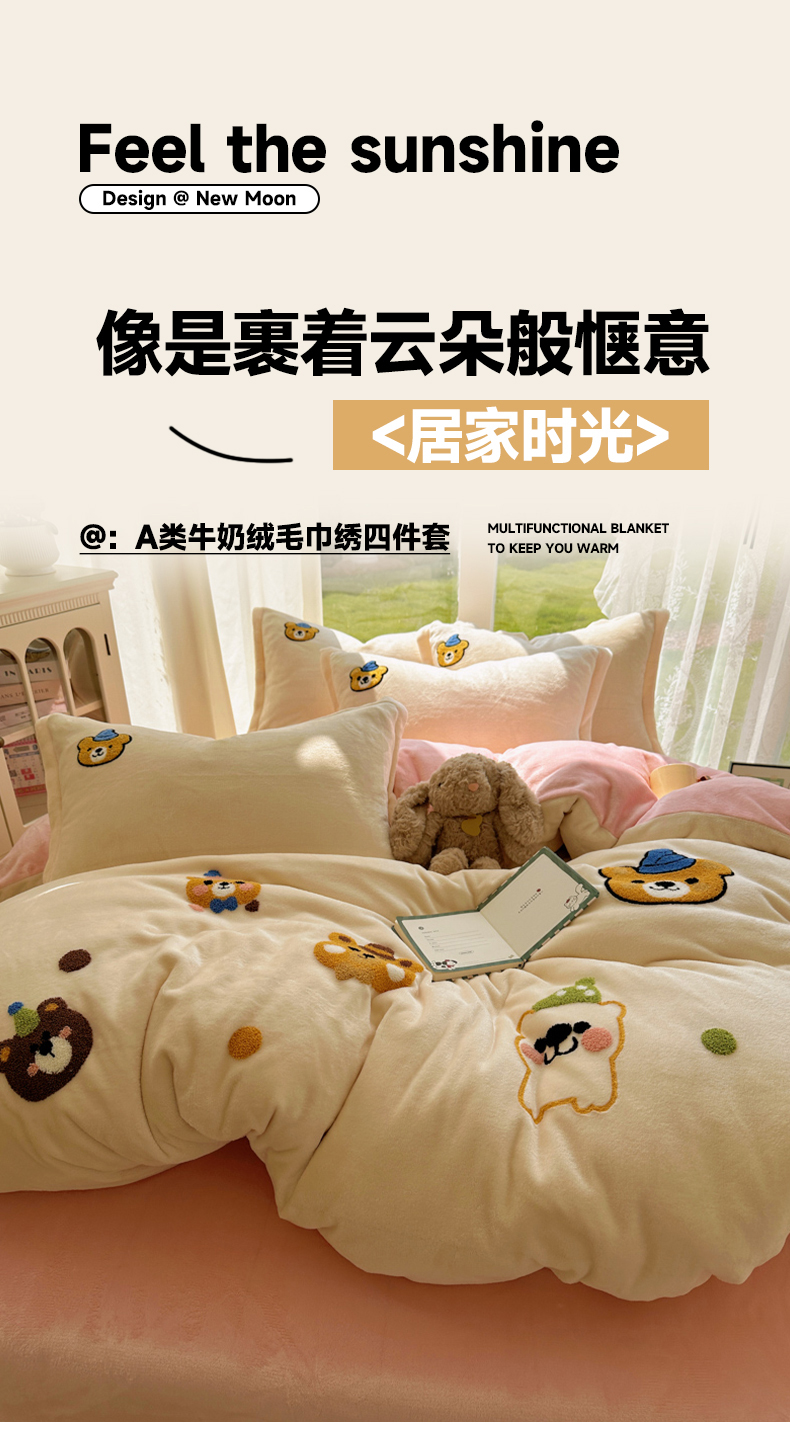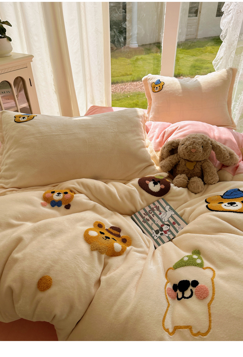 当前位置: 91家纺网 > 商品网购 > 床品套件 > 四件套 > 牛奶绒四件套 > 梵克保罗 2025新款A类牛奶绒毛巾绣四件套(包含买家秀) 趣味熊-奶白+粉