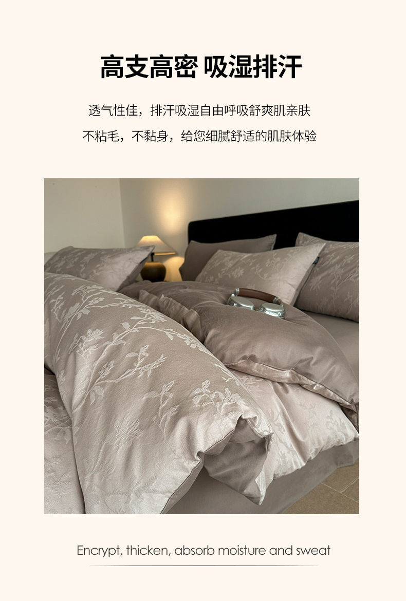 (总)宜代光年 2025新款60s全棉水洗色织提花磨毛四件套,执笔水墨-灰,红木林-深灰,言柒-暖橘,云树-灰,执笔水墨-咖,红木林-森林绿,云树-森林绿