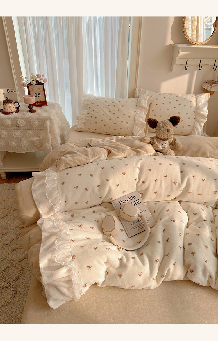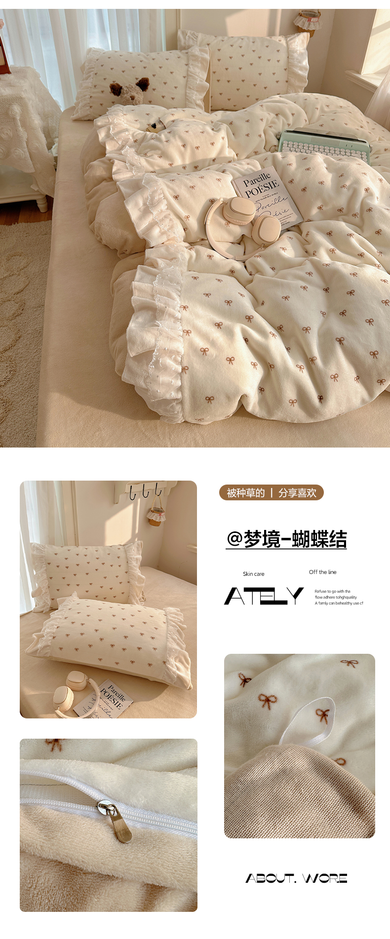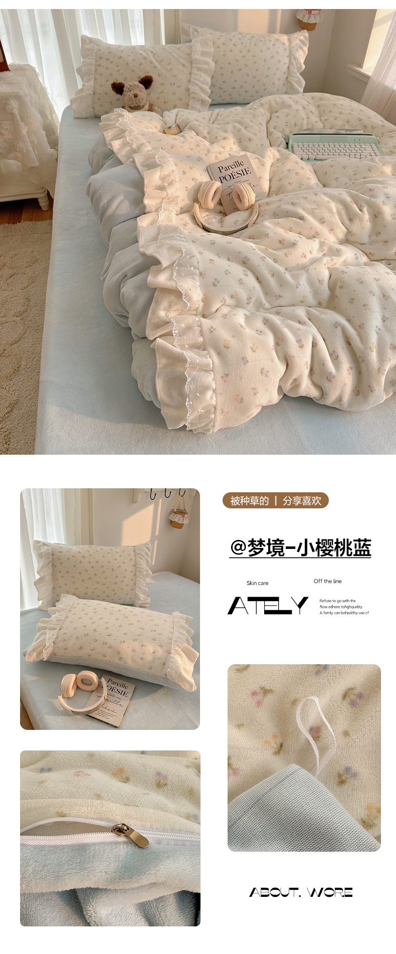 当前位置: 91家纺网 > 商品网购 > 床品套件 > 四件套 > 牛奶绒四件套 > 山茶家纺 2025新款韩系A类牛奶绒花边印花四件套梦境 梦境-小玫瑰
