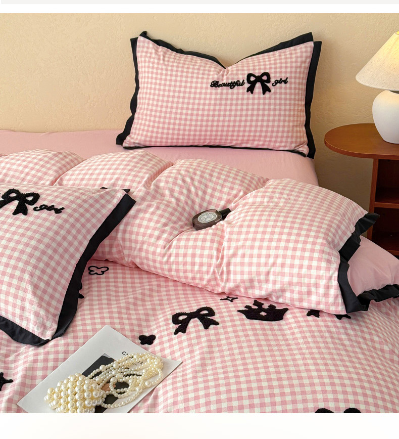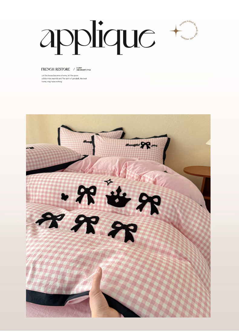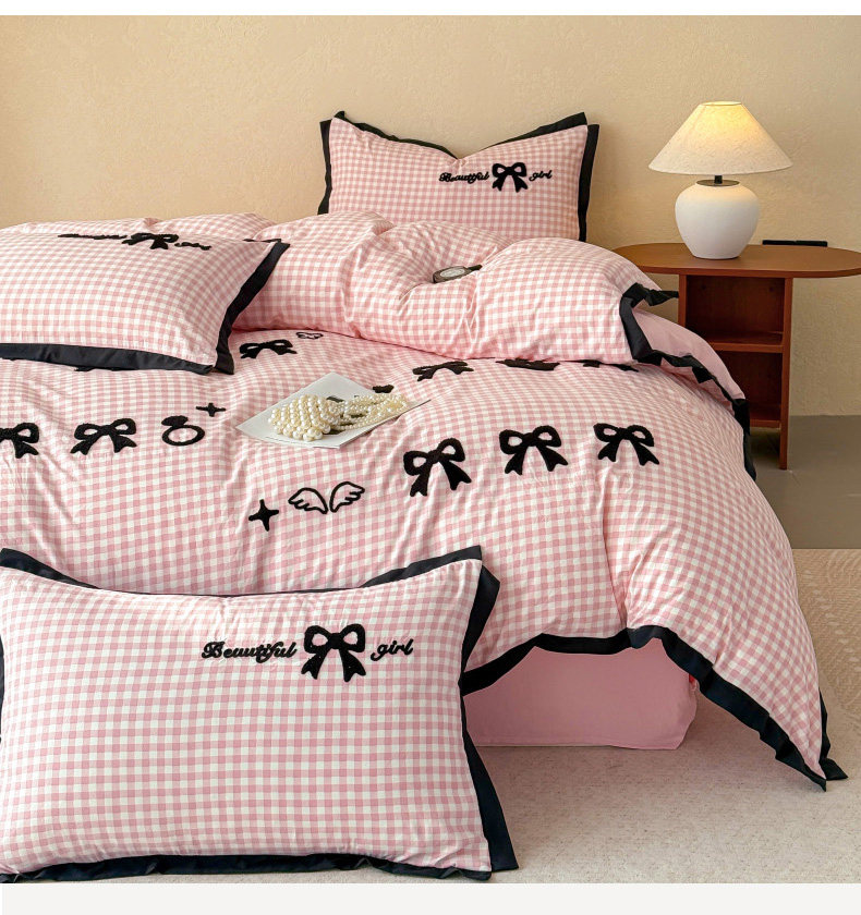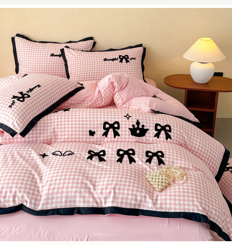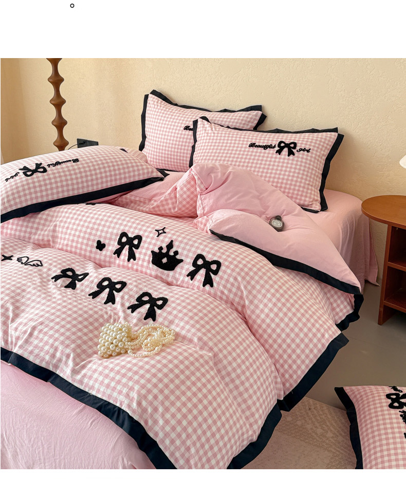 当前位置: 91家纺网 > 商品网购 > 床品套件 > 四件套 > 水洗棉四件套 > 米可 2025新款水洗棉绣花花边款四件套 蝴蝶结-粉