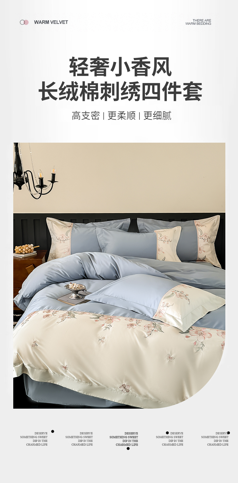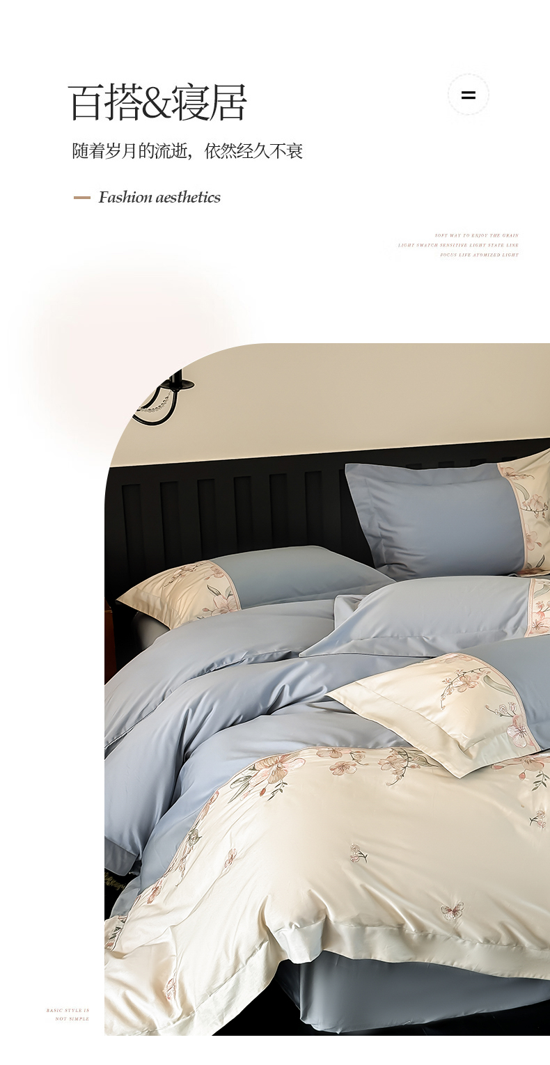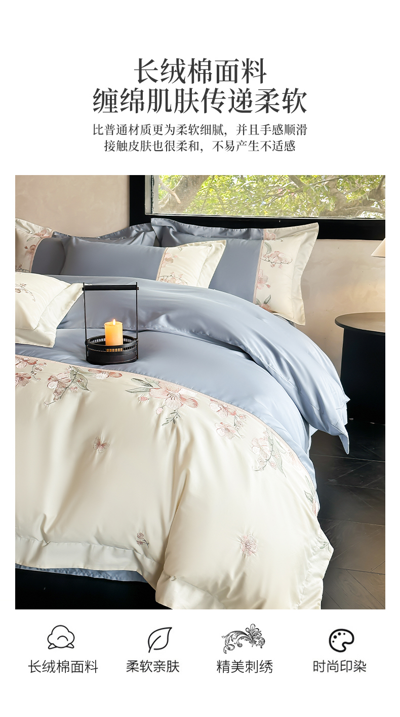 总宅家居 2024新款秘密花园系列轻奢小香风纯棉刺绣长绒棉四件套,秘密花园-初夏粉,秘密花园-梵星蓝,秘密花园-贵妃绿,秘密花园-奶昔白,秘密花园-香槟金