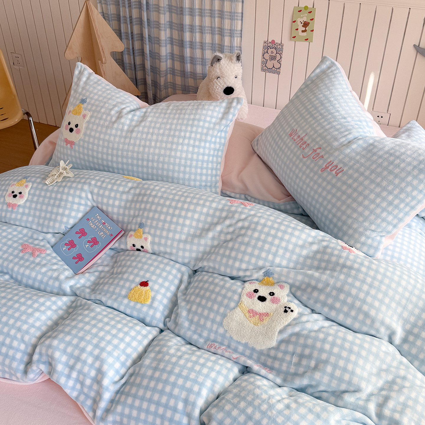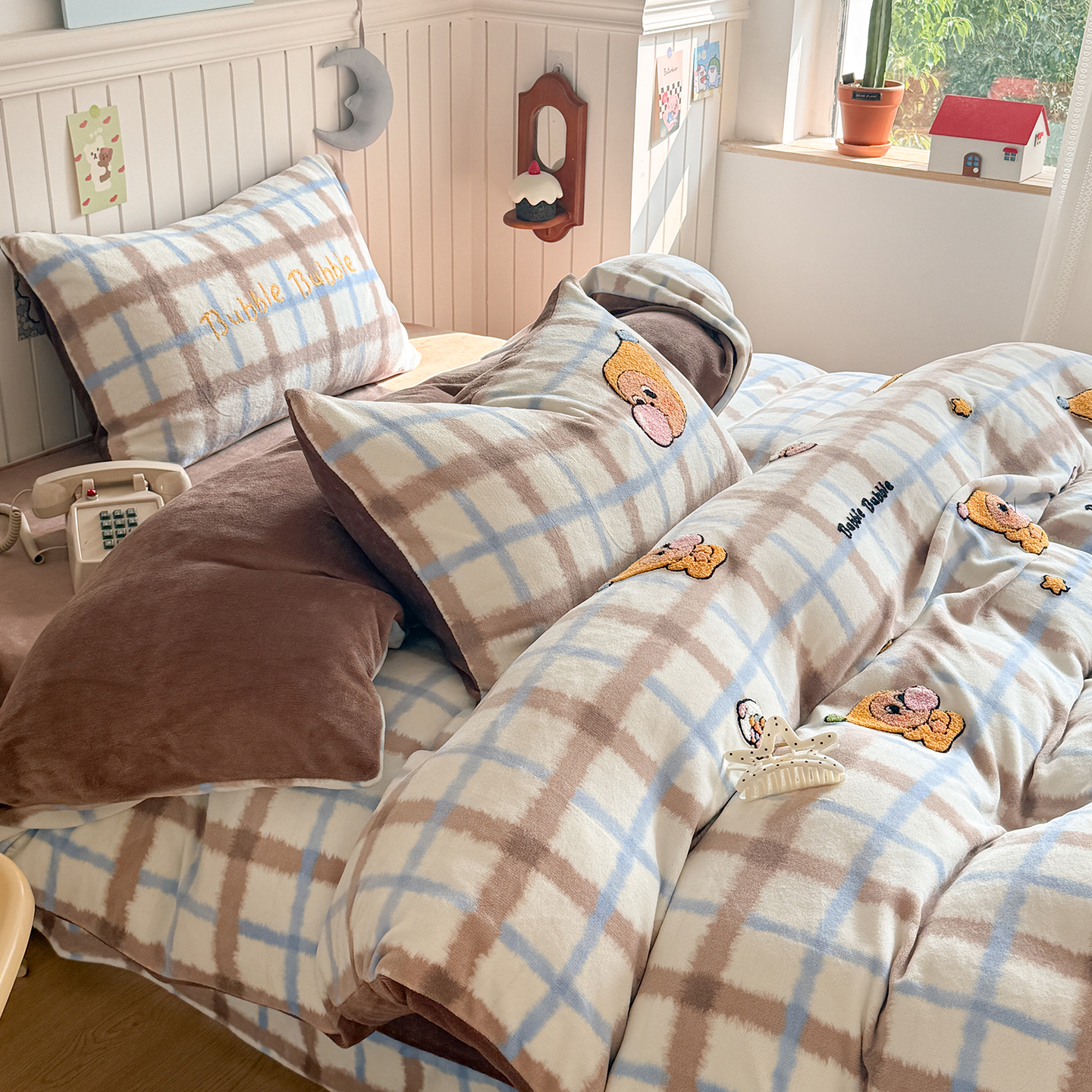 (总)潘朵拉 2025新款ins风牛奶绒床盖四件套,饼干熊,点点狗,粉萌宝,花漾,墨莲,奶酪狗,山茶予你,条纹狗,小狗杰西,紫薇