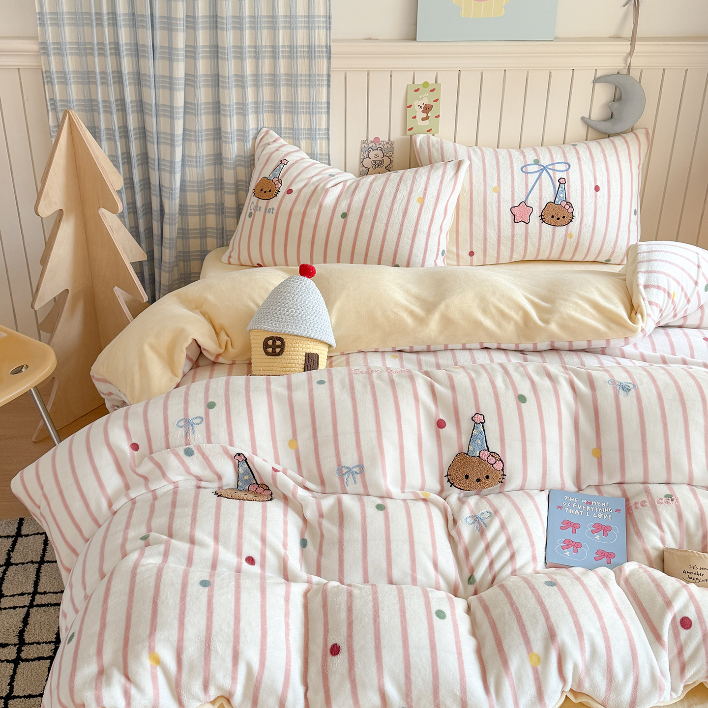 潘朵拉家纺 2025新款A类牛奶绒毛巾绣系列四件套 凯蒂酱