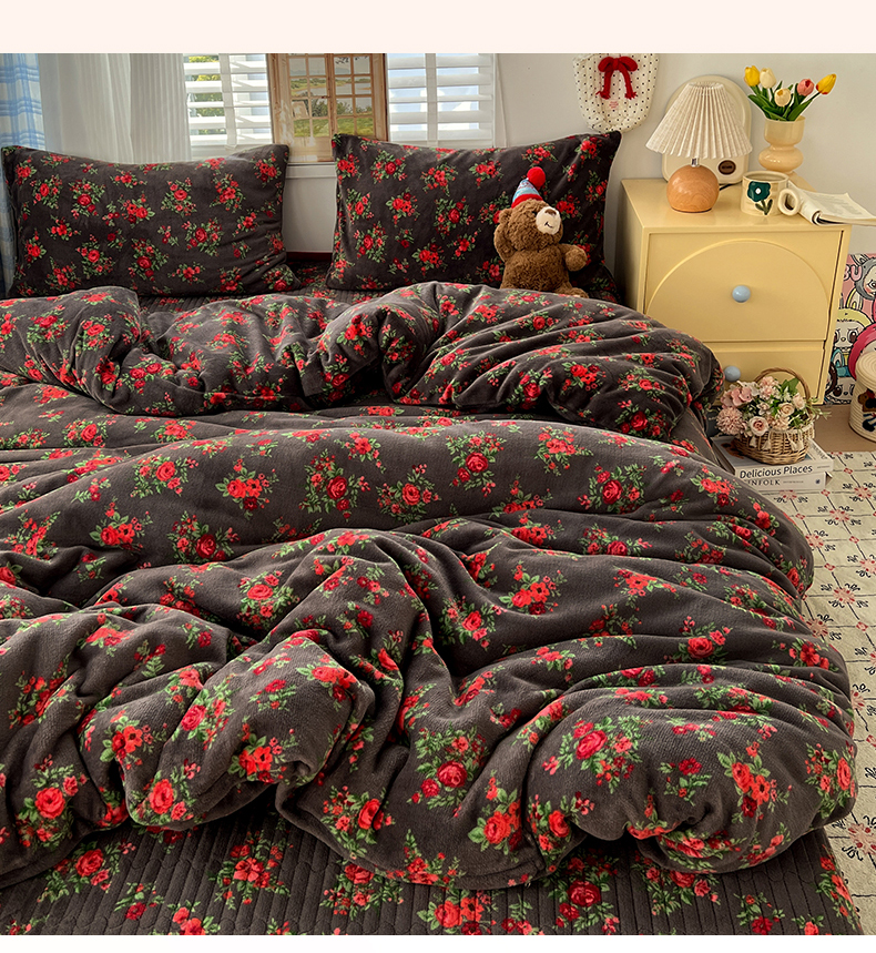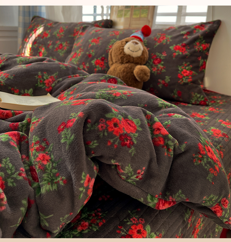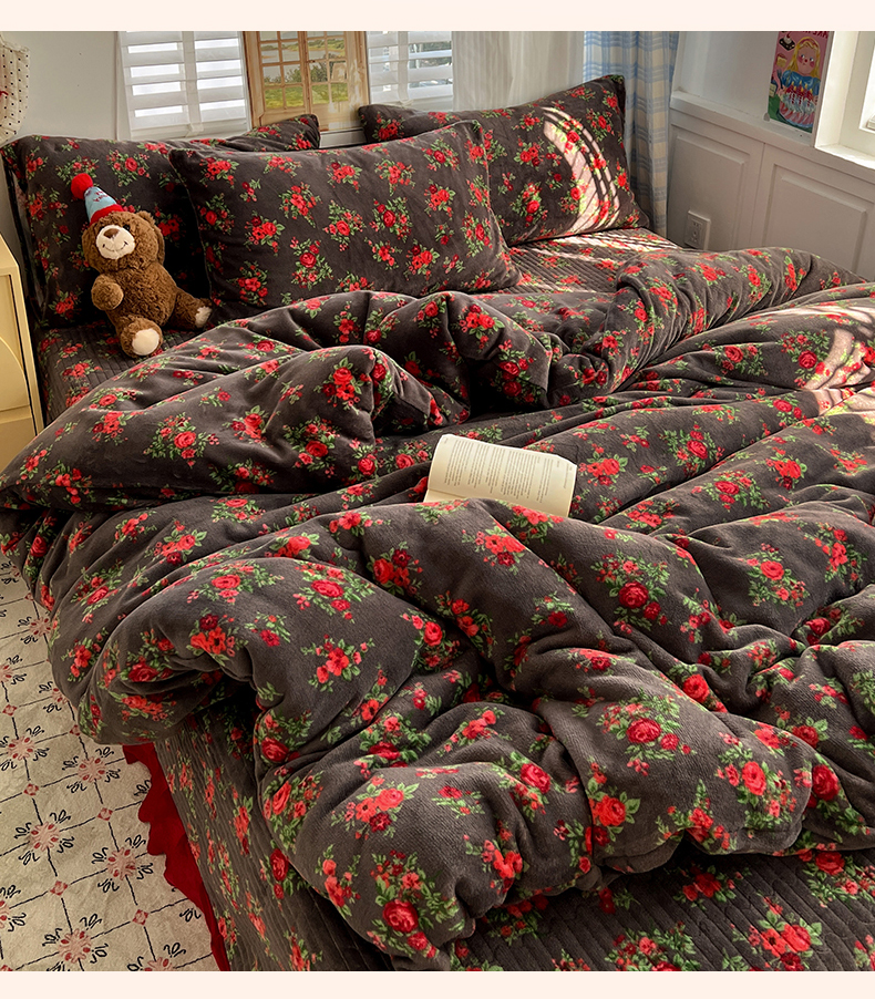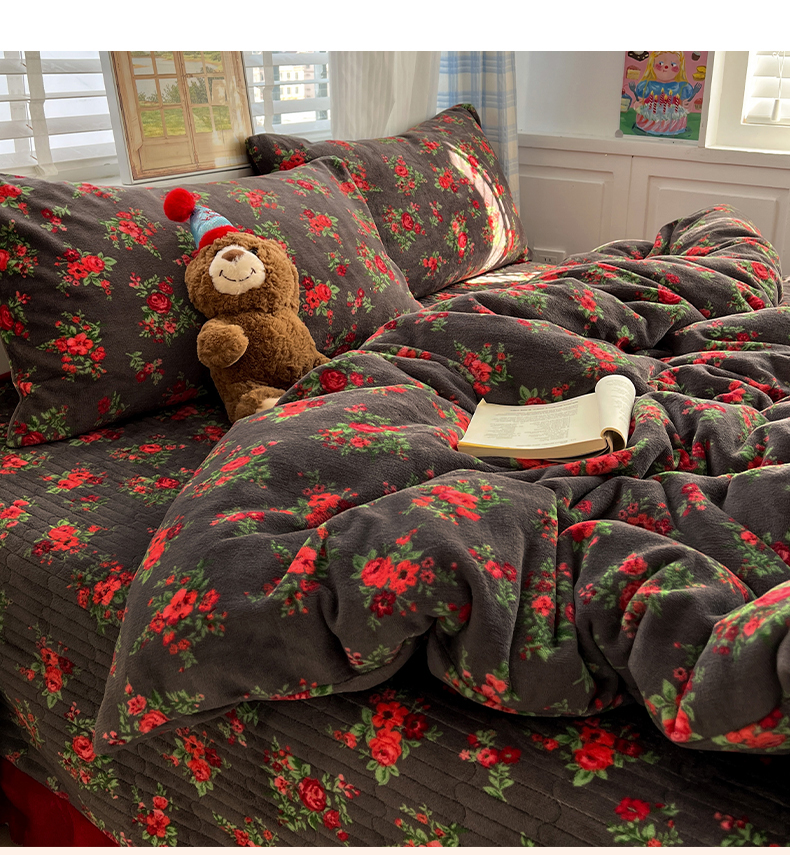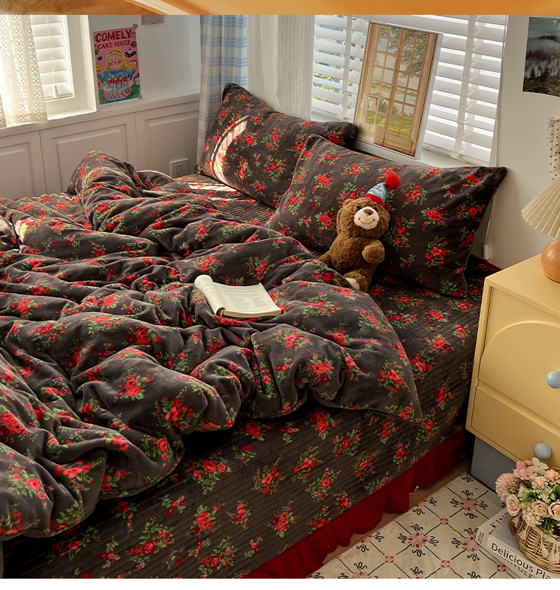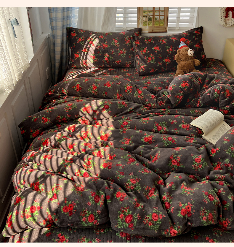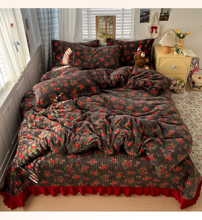 当前位置: 91家纺网 > 商品网购 > 床品套件 > 四件套 > 牛奶绒四件套 > 鑫利来家纺 2025新款牛奶绒加厚印花法式赫本风花边床盖四件套 床盖款-玫瑰的故事