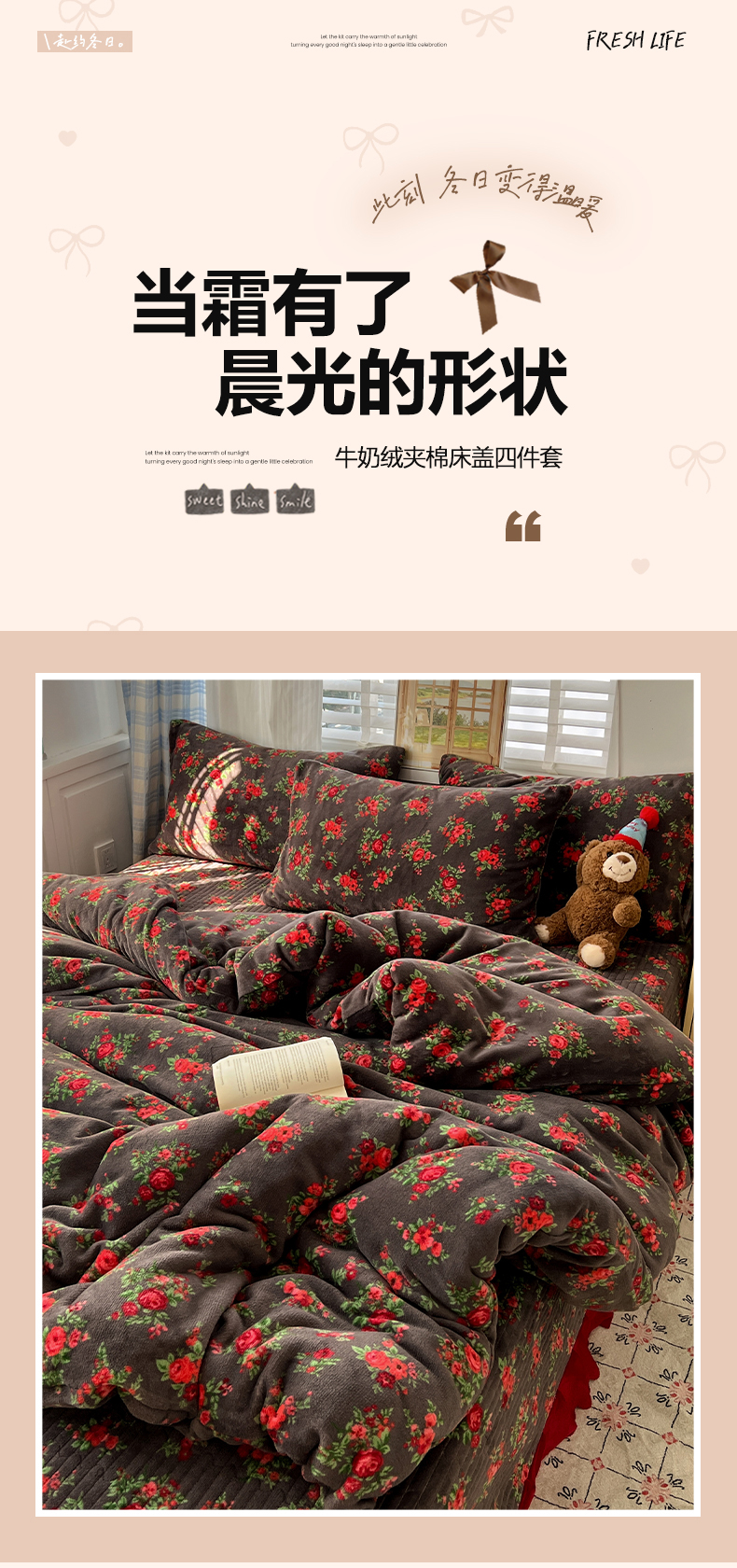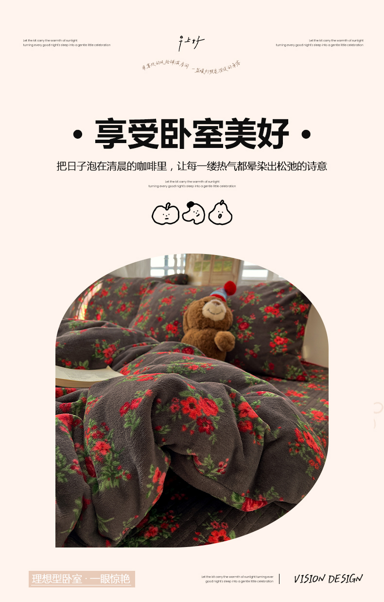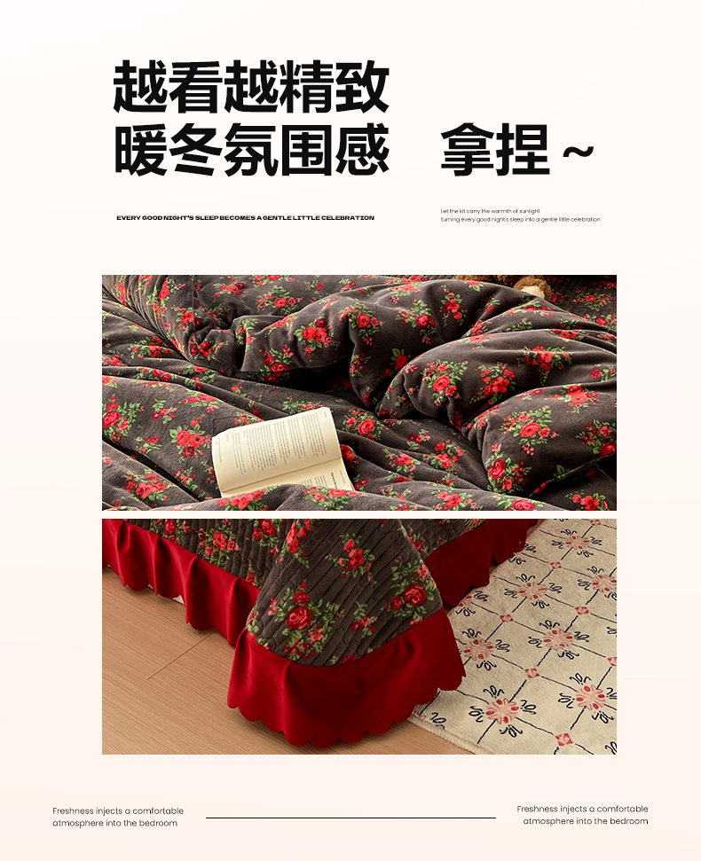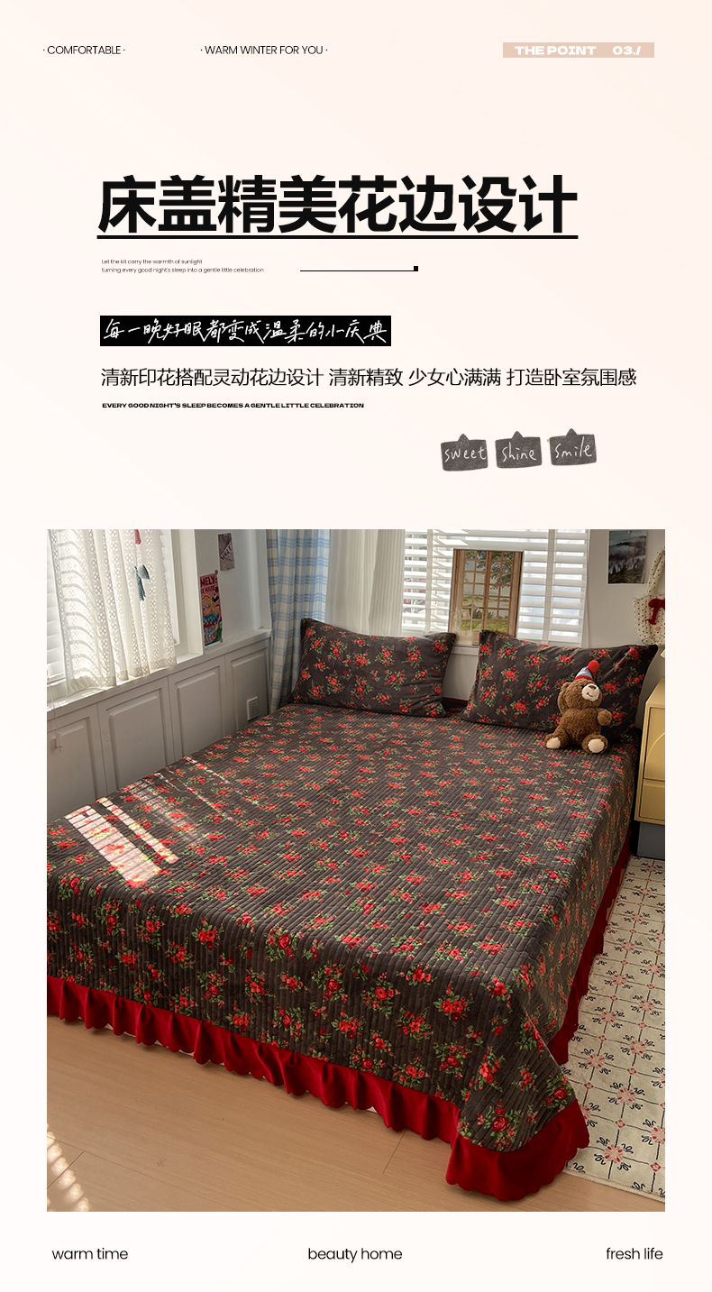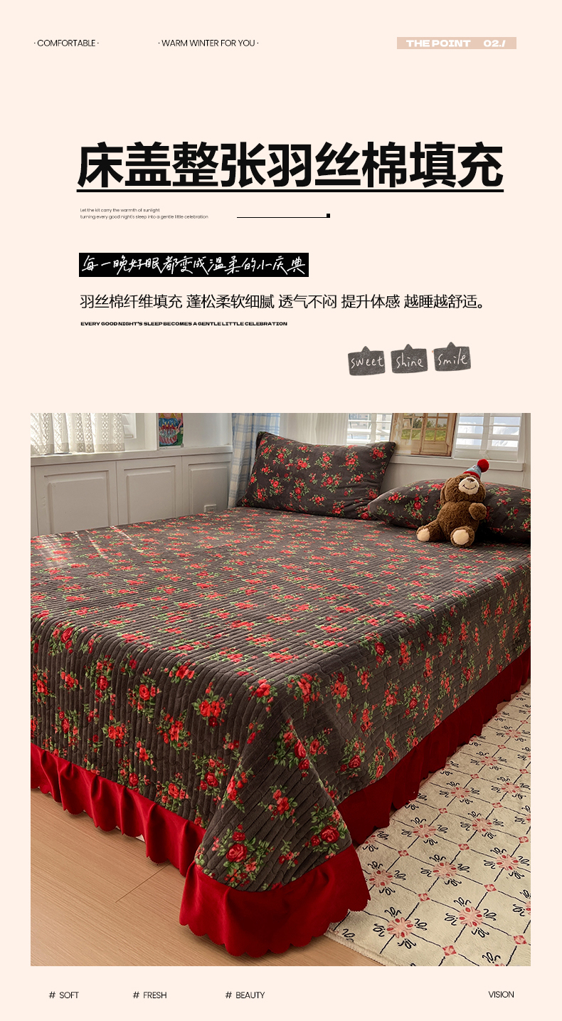 当前位置: 91家纺网 > 商品网购 > 床品套件 > 四件套 > 牛奶绒四件套 > 鑫利来家纺 2025新款牛奶绒加厚印花法式赫本风花边床盖四件套 床盖款-玫瑰的故事