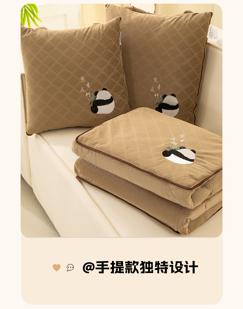 多今家纺 2025新款便携手提式水晶绒玛莎绒刺绣抱枕被子-熊有成竹系列 熊有成竹-姜黄