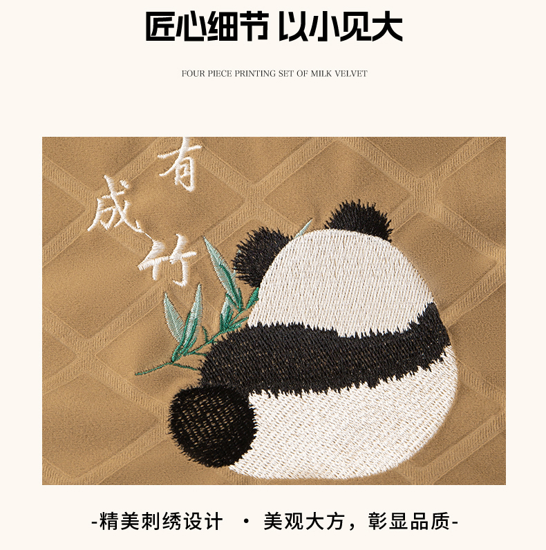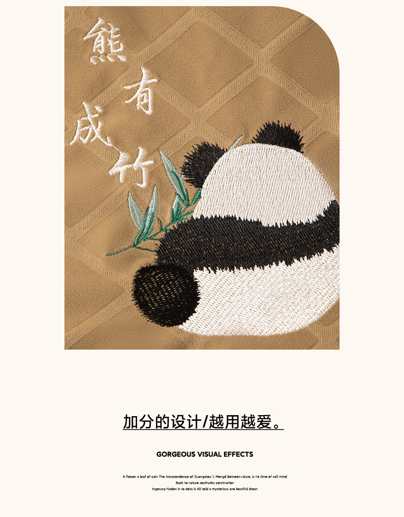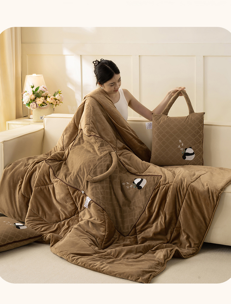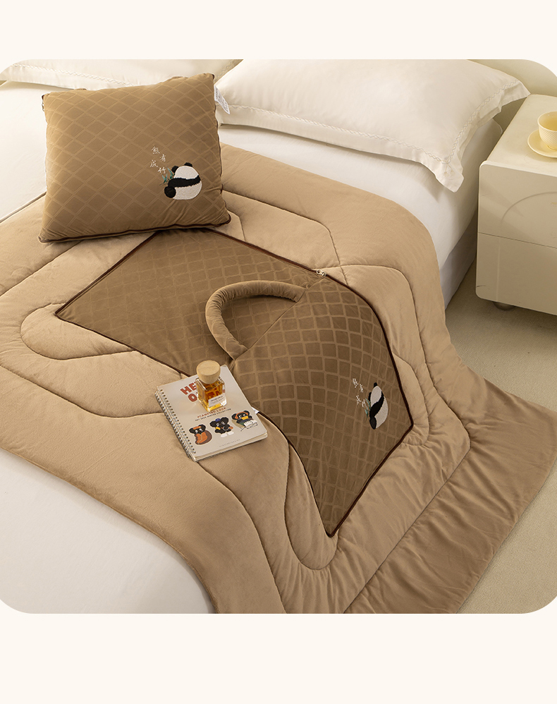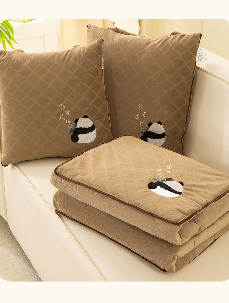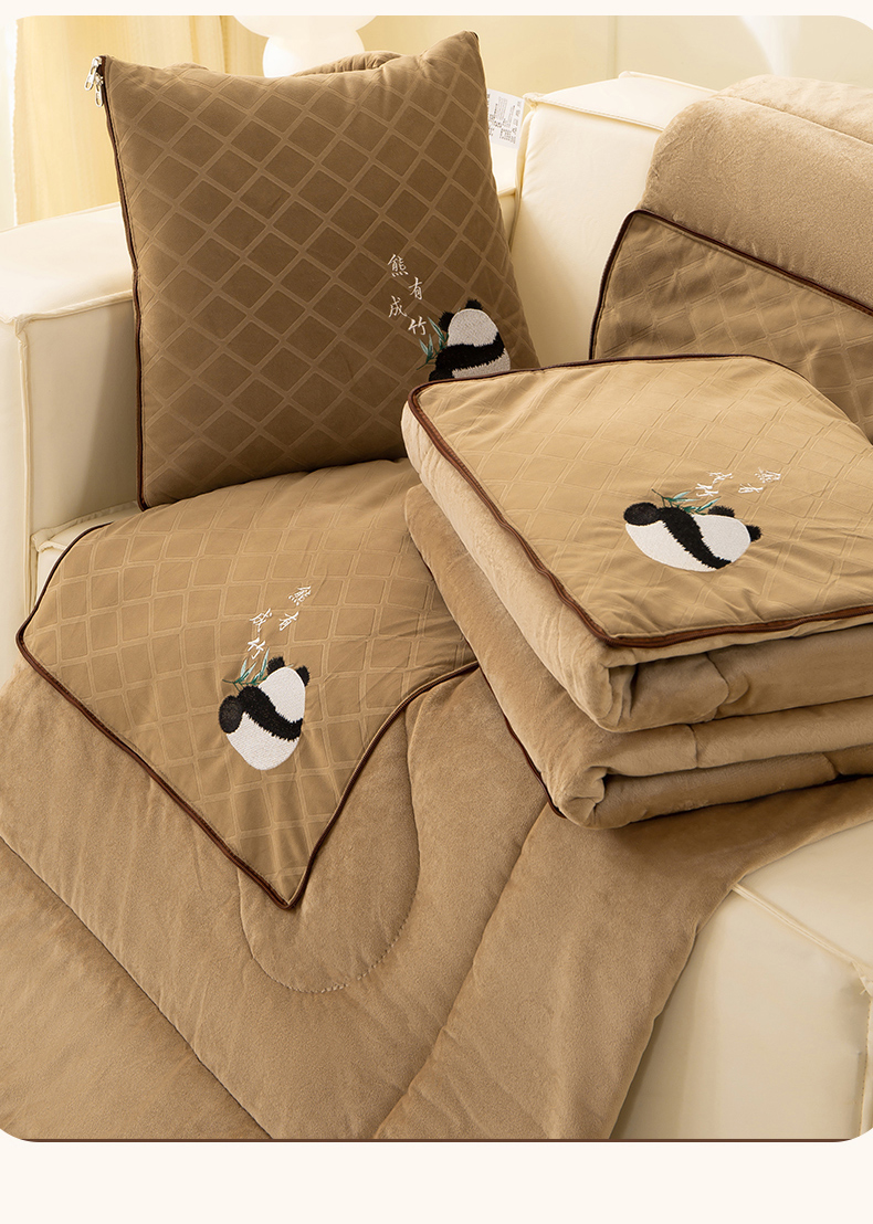 商品名称:多今家纺 2025新款便携手提式水晶绒玛莎绒刺绣抱枕被子-熊有成竹系列 熊有成竹-姜黄