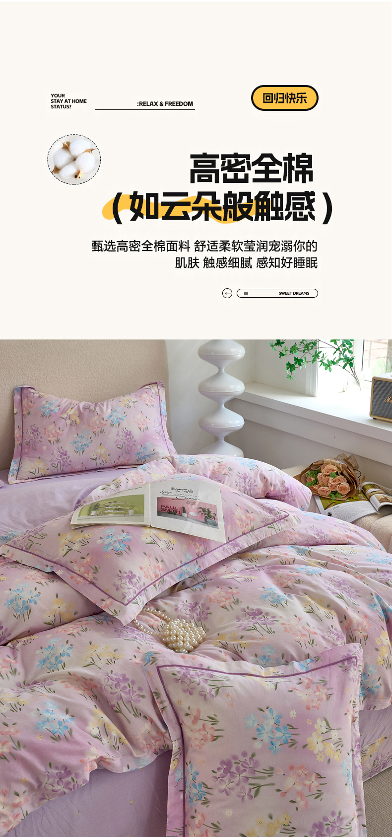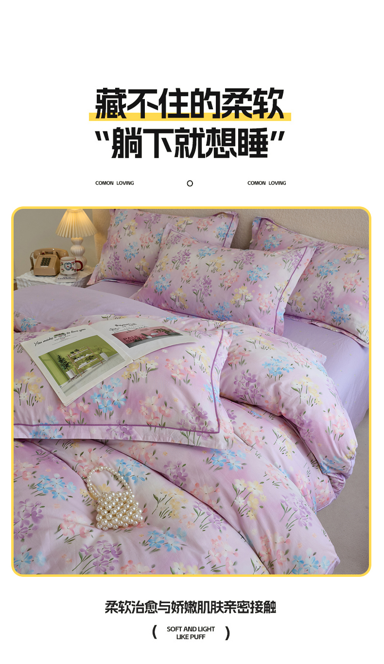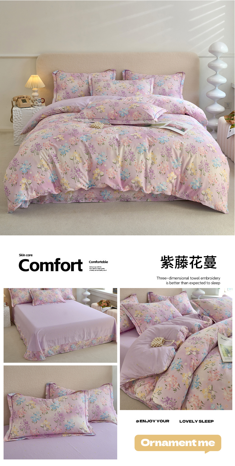 当前位置: 91家纺网 > 商品网购 > 床品套件 > 四件套 > 全棉普通四件套 > 三沁家居 2025新款全棉纯棉斜纹精梳长绒棉印花四件套 紫藤花蔓