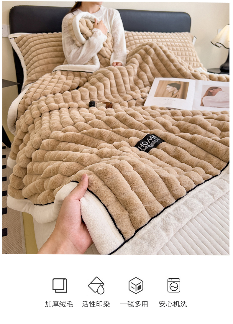 叠派家纺 2025新款毛毯A类金貂绒毛毯剪格多功能毛毯盖毯毛毯(可供跨境外贸抽空热款首选) 金貂绒-卡其