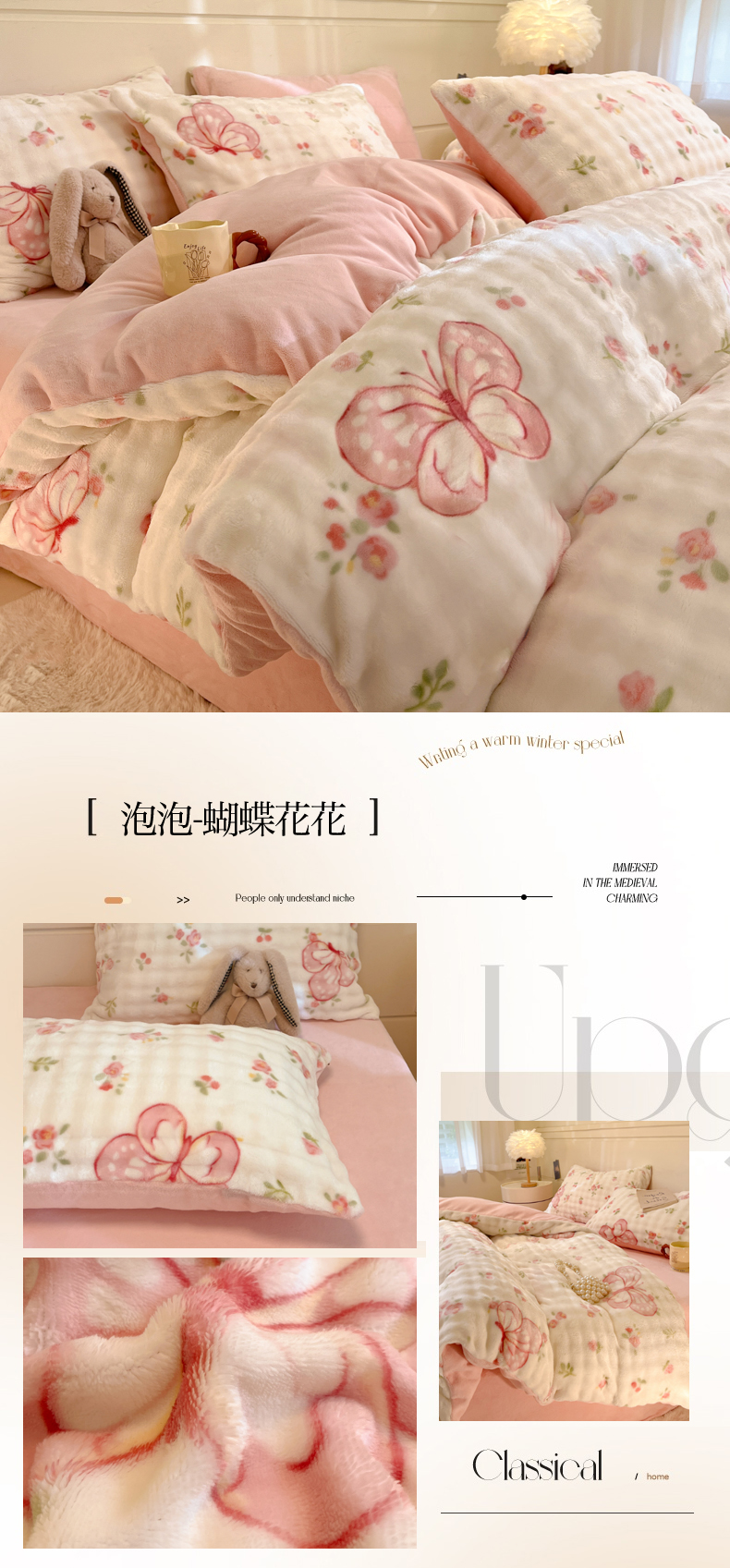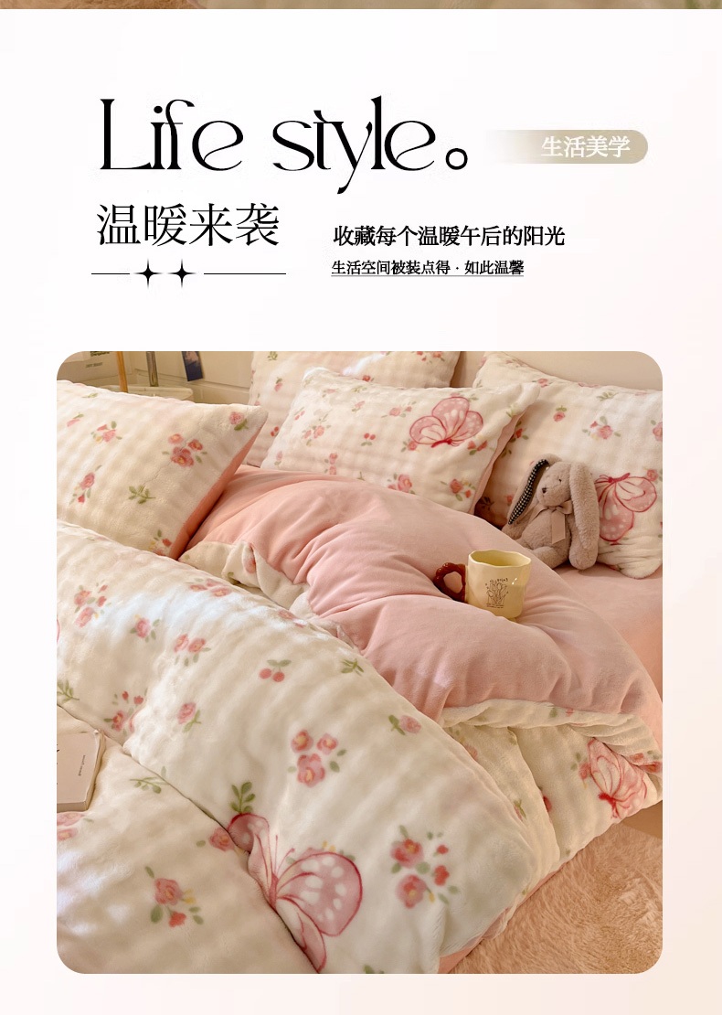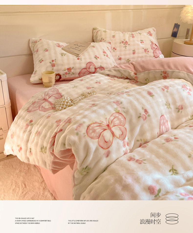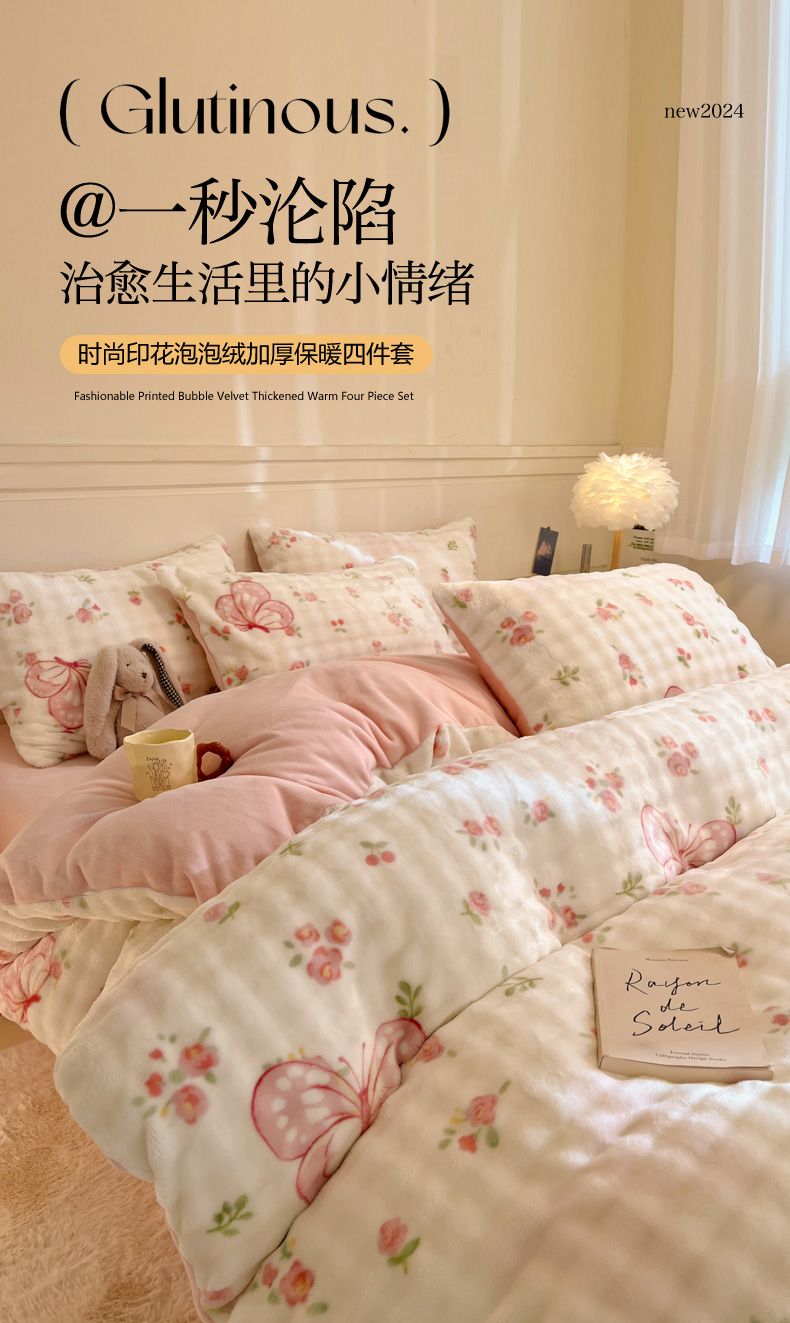 当前位置: 91家纺网 > 商品网购 > 床品套件 > 四件套 > 其它四件套 > 柒月家居 2025新款时尚印花泡泡绒加厚保暖四件套套件 泡泡-蝴蝶花花