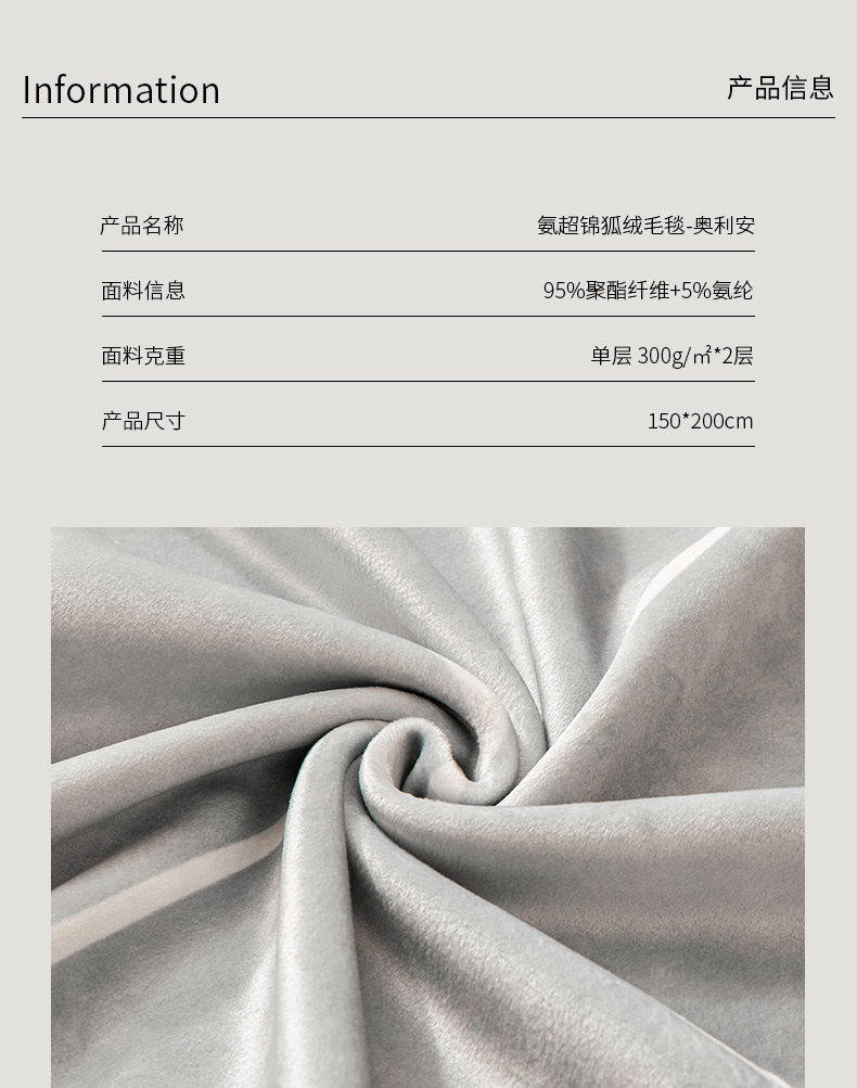 商品名称:(总)禧禾 2025新款300g氨超锦狐绒数码印花毛毯-奥利安