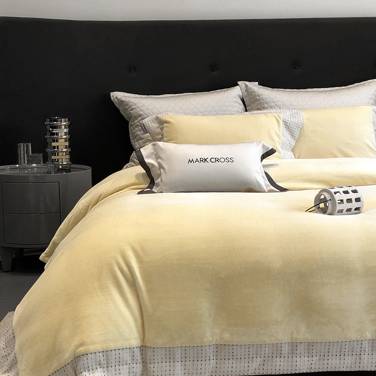 佳汐蓝家纺 2025新款熊极绒2.0重工色织大拼边系列四件套 圣诞胶片-星芒黄