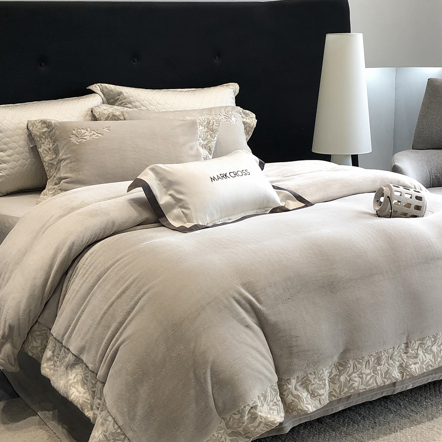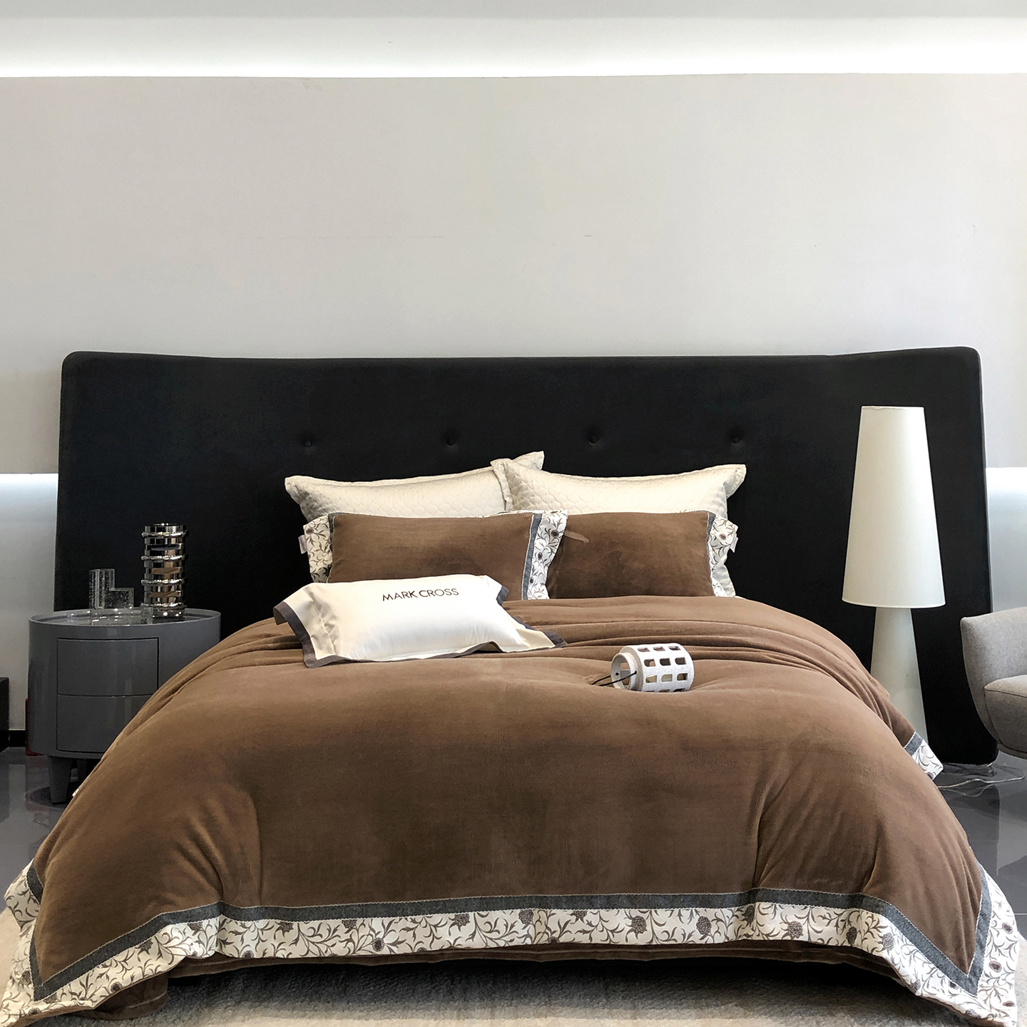 (总)佳汐蓝家纺 2026新款牛奶绒印花流光纱四件套-香奈(券后不低于328元),香奈