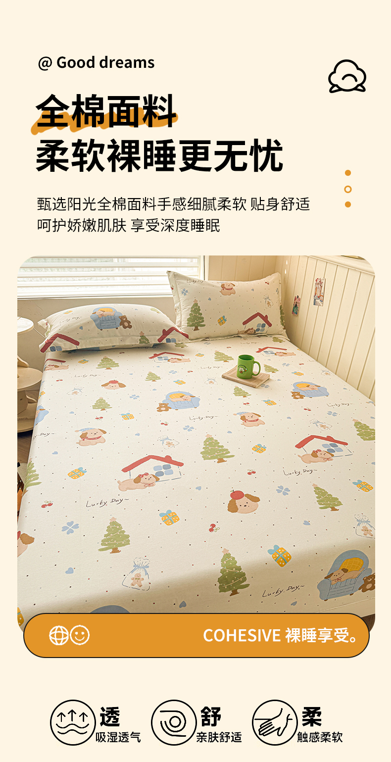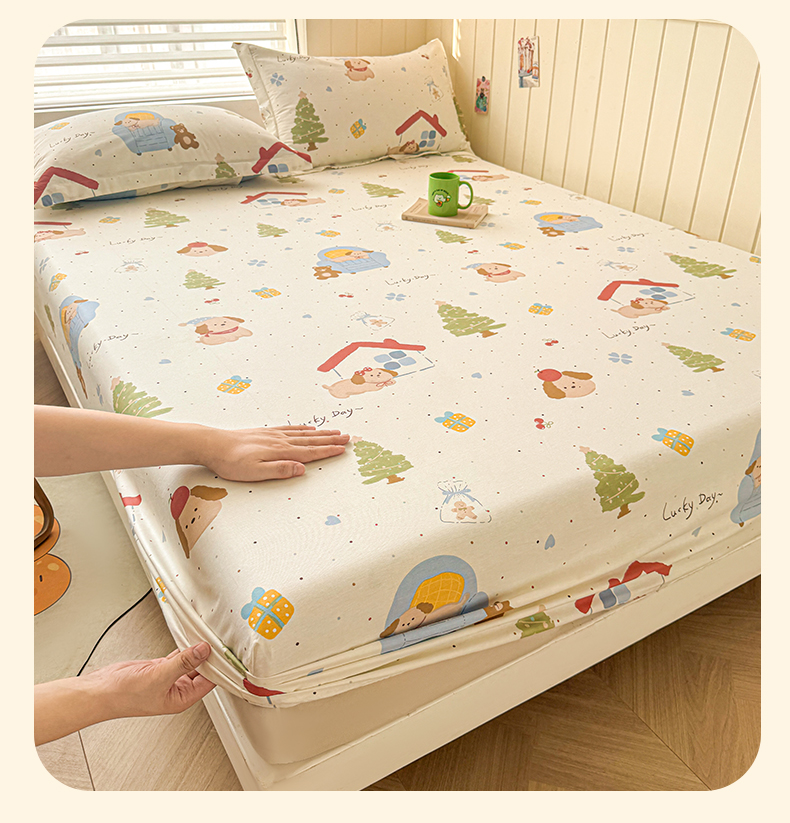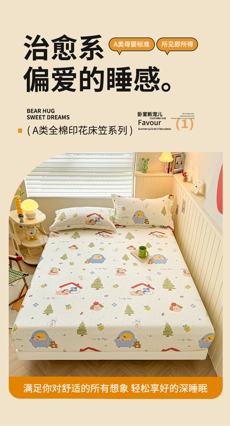 名优家纺 2025新款全棉纯棉12868韩版小清新系列床笠单件--单床笠 浪漫小屋